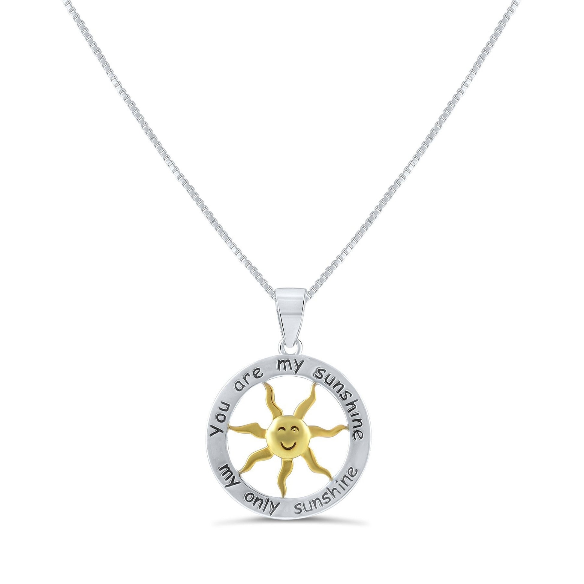 Sterling Silver Two Tone You are my Sunshine my Only Sunshine Necklace 18"