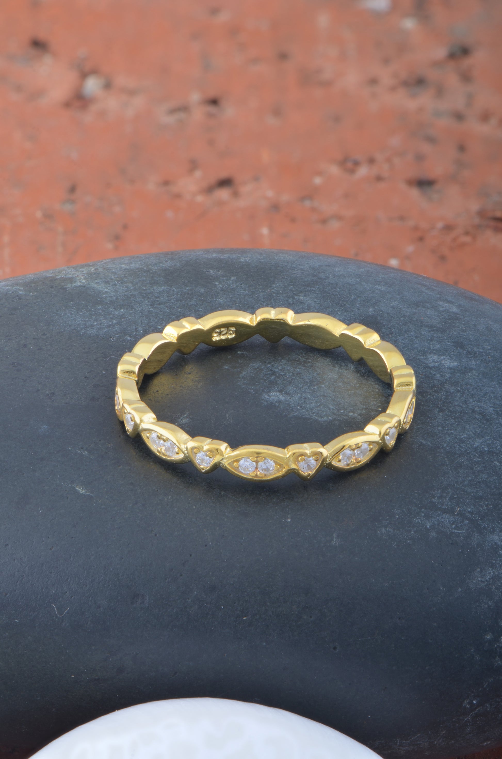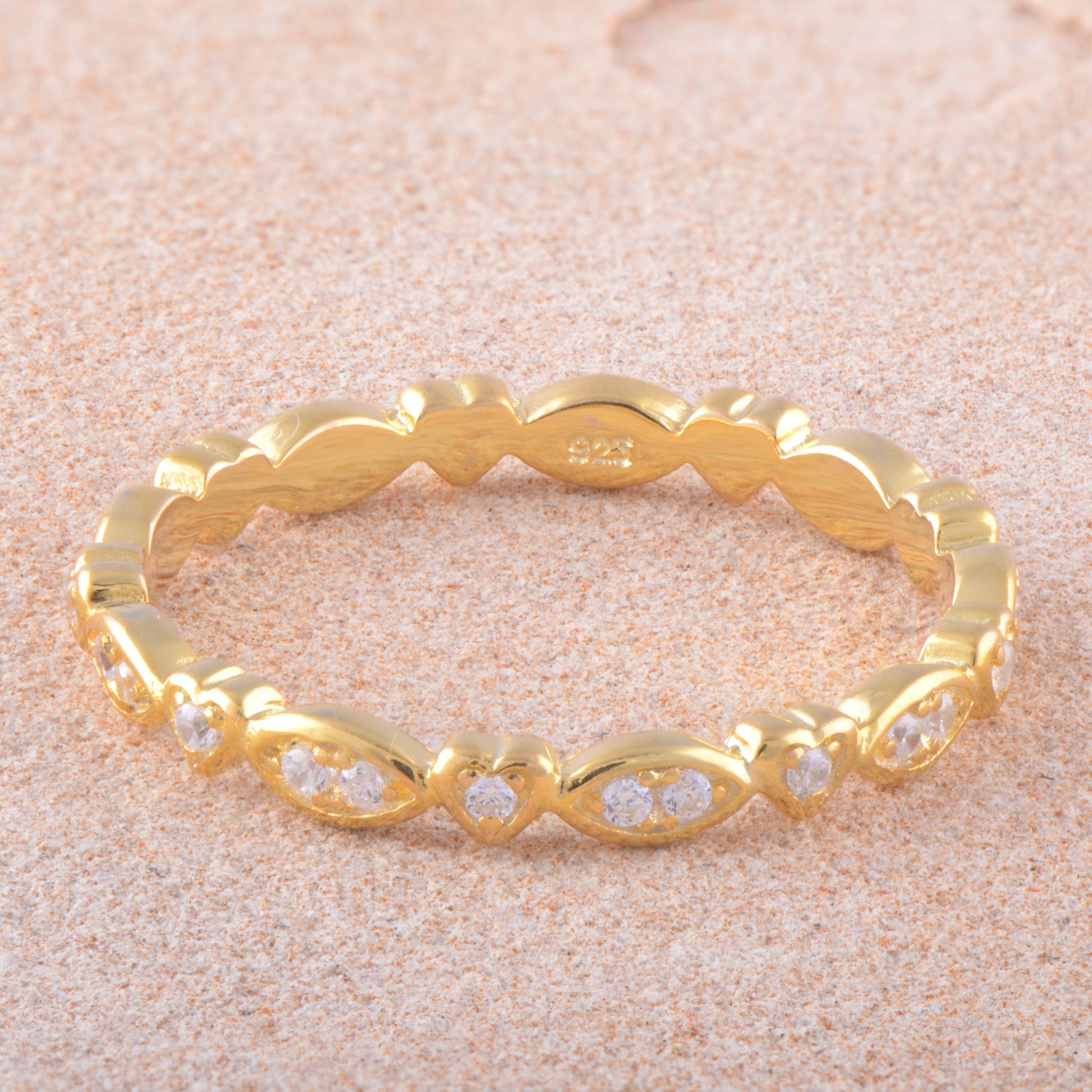 Yellow Gold Over Sterling Silver Womens Cz Heart Eternity Band Stacking Ring