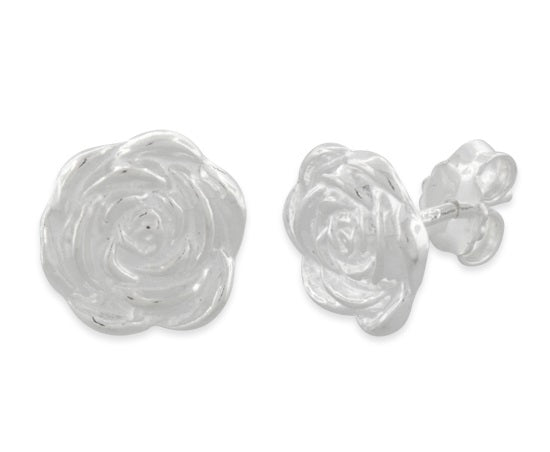 Rose Flower Stud Earrings Sterling Silver - 10mm