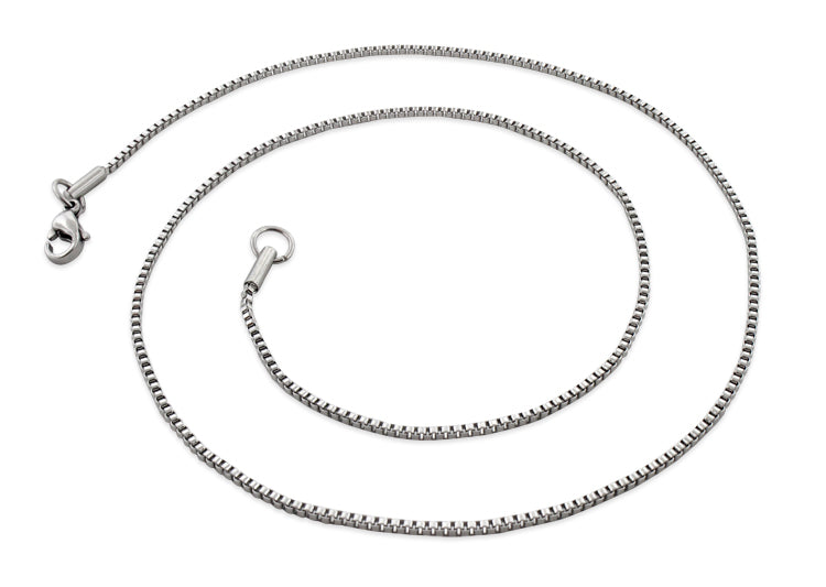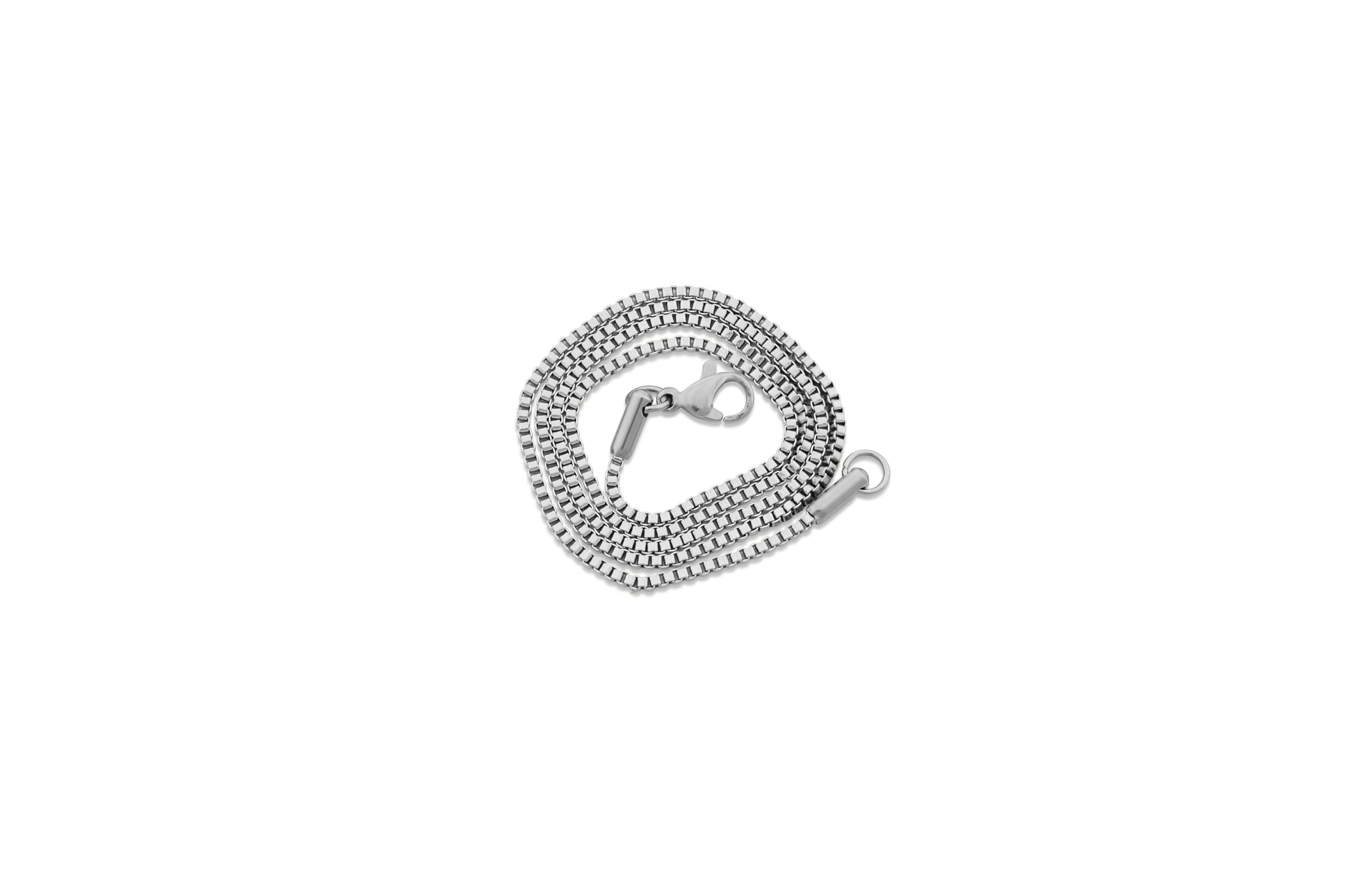 Discover timeless simplicity with the Stainless Steel Unisex Dainty Box Chain Necklace, featuring a delicate 1.5mm width. Available in various lengths from 16 inches to 30 inches, this chain embodies subtle elegance while offering the versatility to suit individual style preferences. Crafted from durable stainless steel, it's a staple for any wardrobe and complements a spectrum of fashion choices.