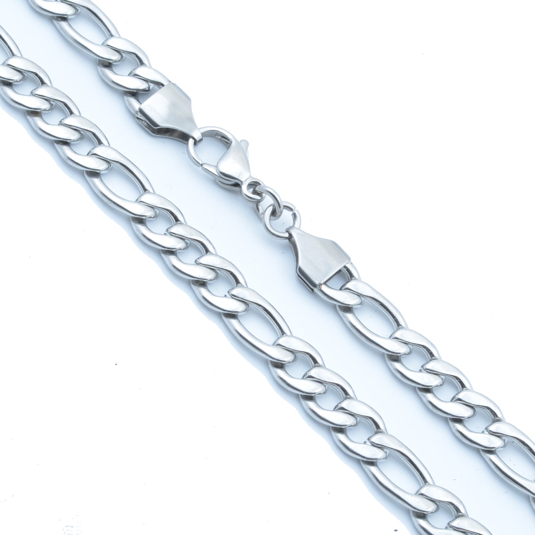 Explore the Stainless Steel Unisex Chunky Italian Figaro Chain Necklace, boasting a substantial 7.5mm thickness. This durable and fashionable chain, available in lengths ranging from 16 to 30 inches, is a versatile accessory designed to complement various styles and preferences.
