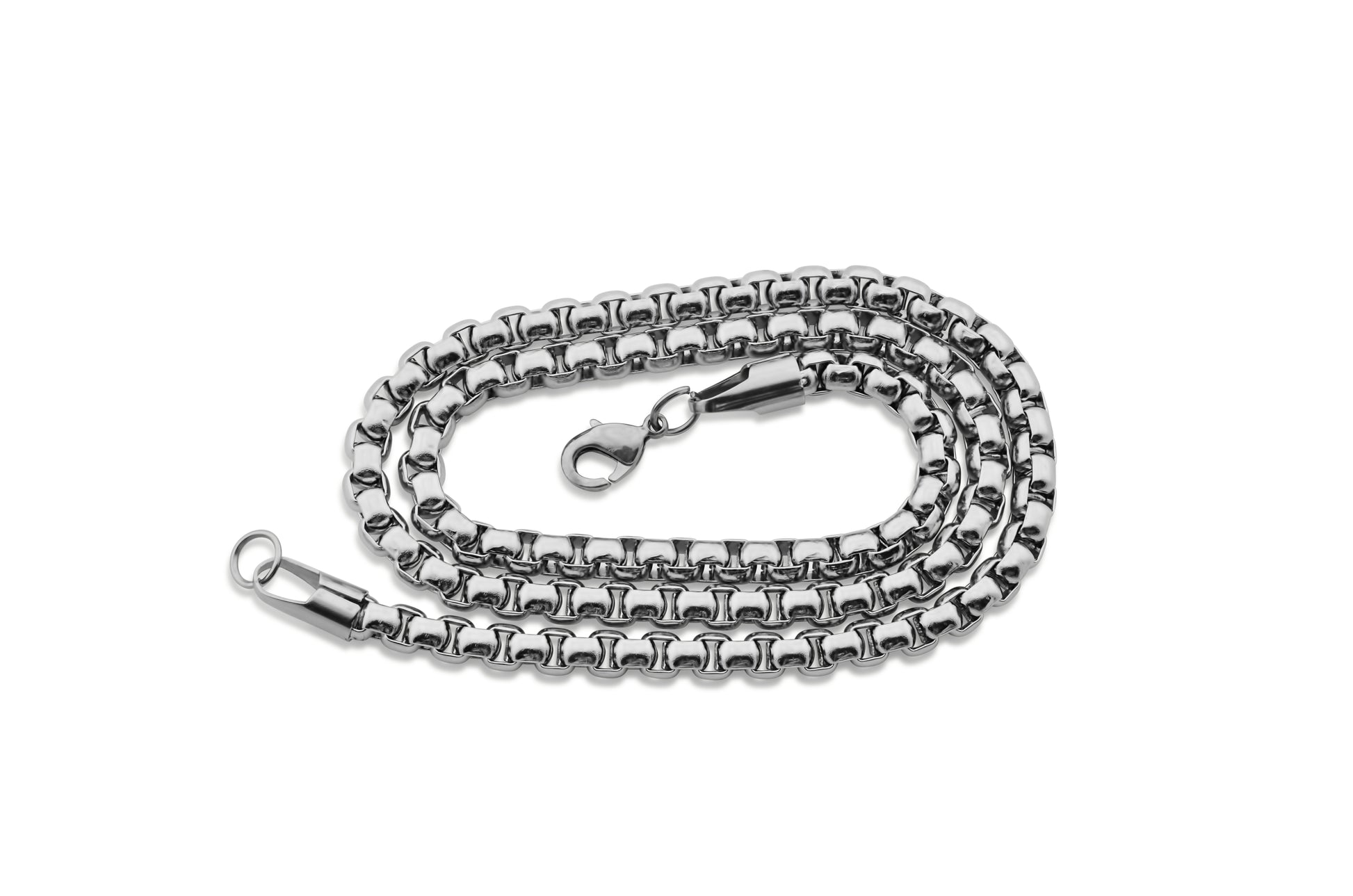 Discover the robust and stylish appeal of the Stainless Steel Unisex Thick Round Box Chain Necklace, presenting a substantial 5.0mm thickness. Available in diverse lengths ranging from 16 inches to 30 inches, this chain exudes durability and a sophisticated look. Crafted from resilient stainless steel, it complements a wide array of styles and occasions.