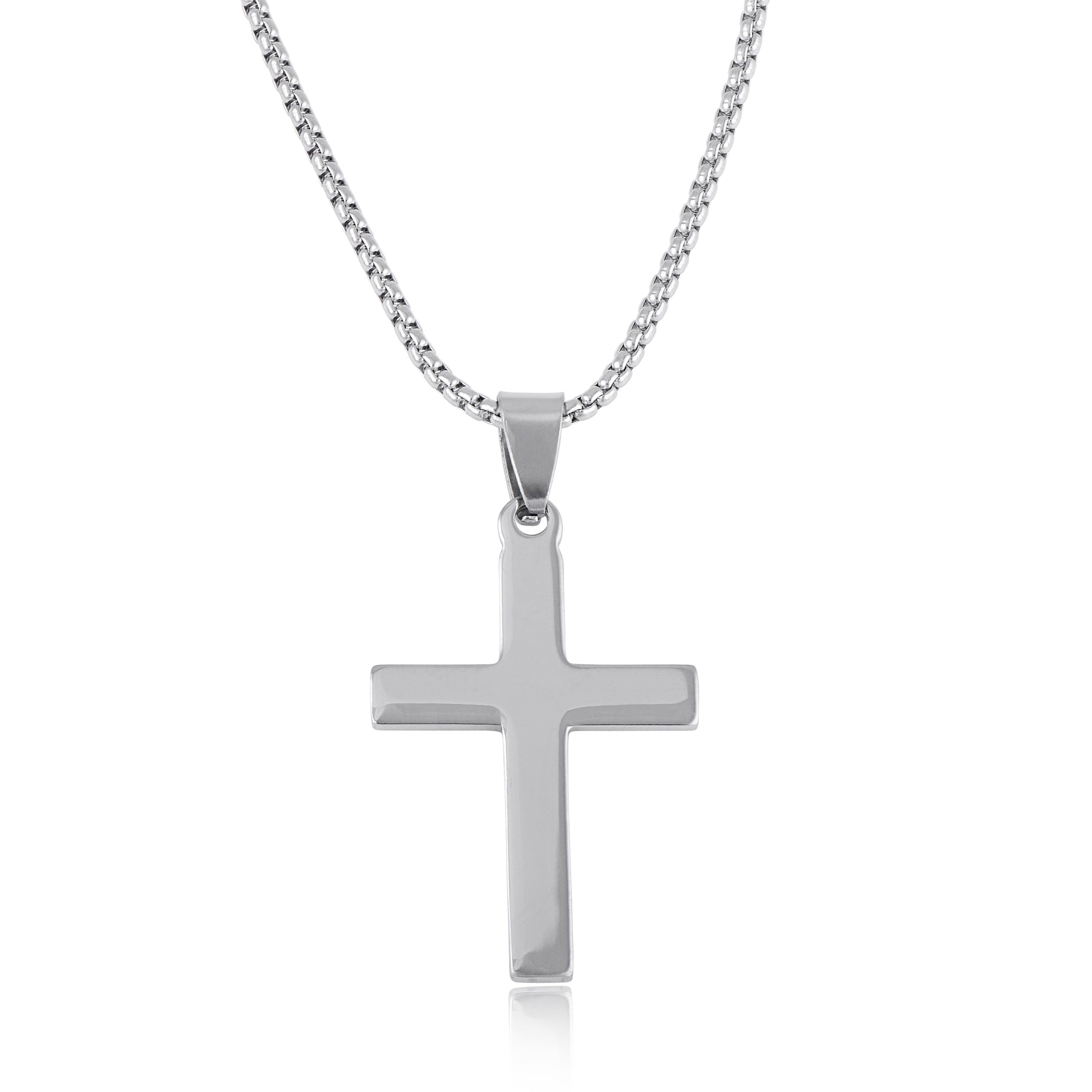 Hypoallergenic Stainless Steel Unisex Traditional Cross Necklace - Round 2.5mm Box Chain