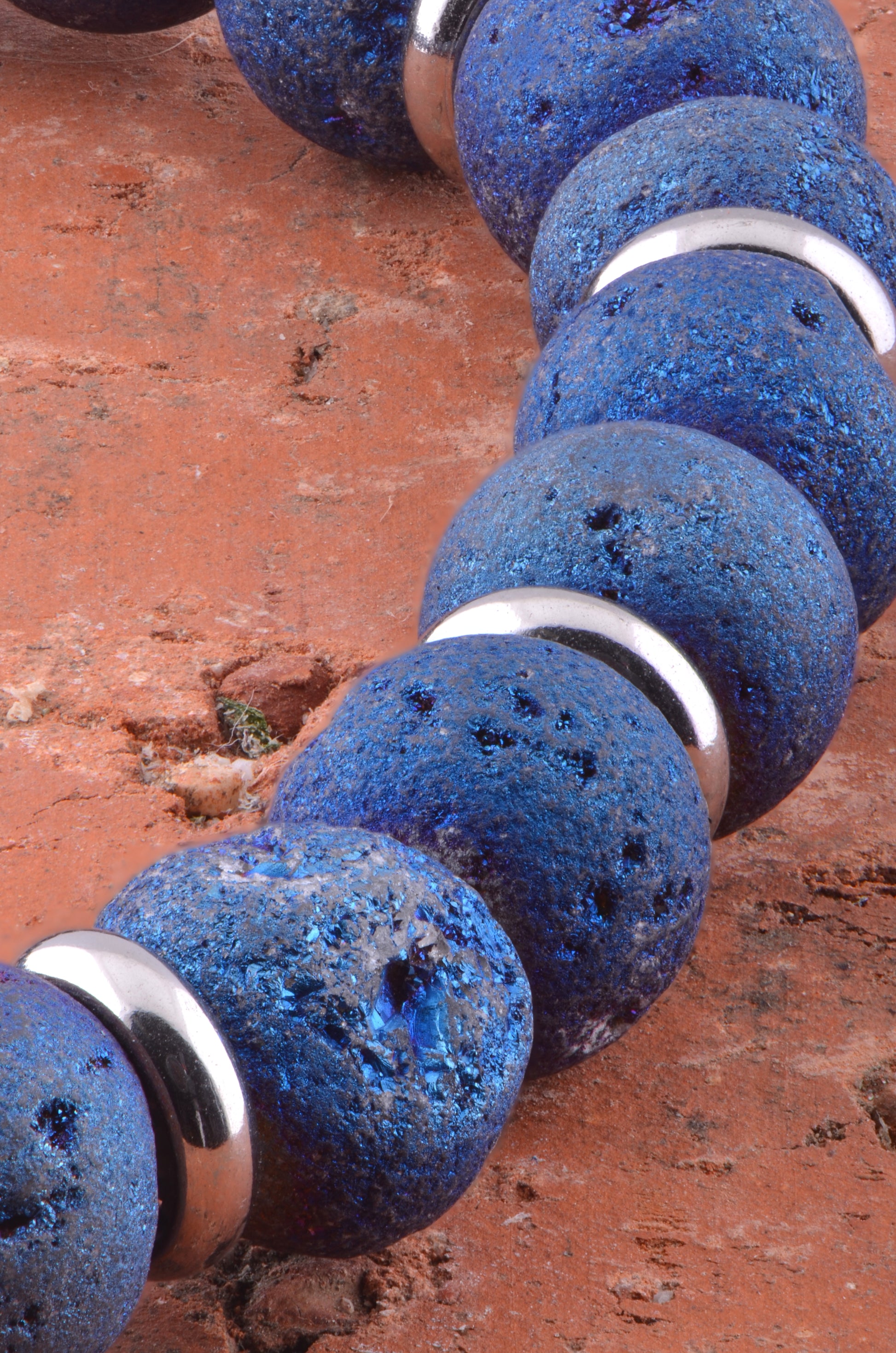 levate your accessory game with the Unisex Stretchy Stainless Steel Bracelet, featuring a captivating Blue Mystic Druzy Stone. The 7-inch bracelet boasts a fusion of stainless steel and a striking blue druzy stone, creating a captivating piece that combines durability with natural beauty. The stretchy design ensures a comfortable and adaptable fit, making it an ideal choice for men and women seeking a stylish yet versatile accessory.