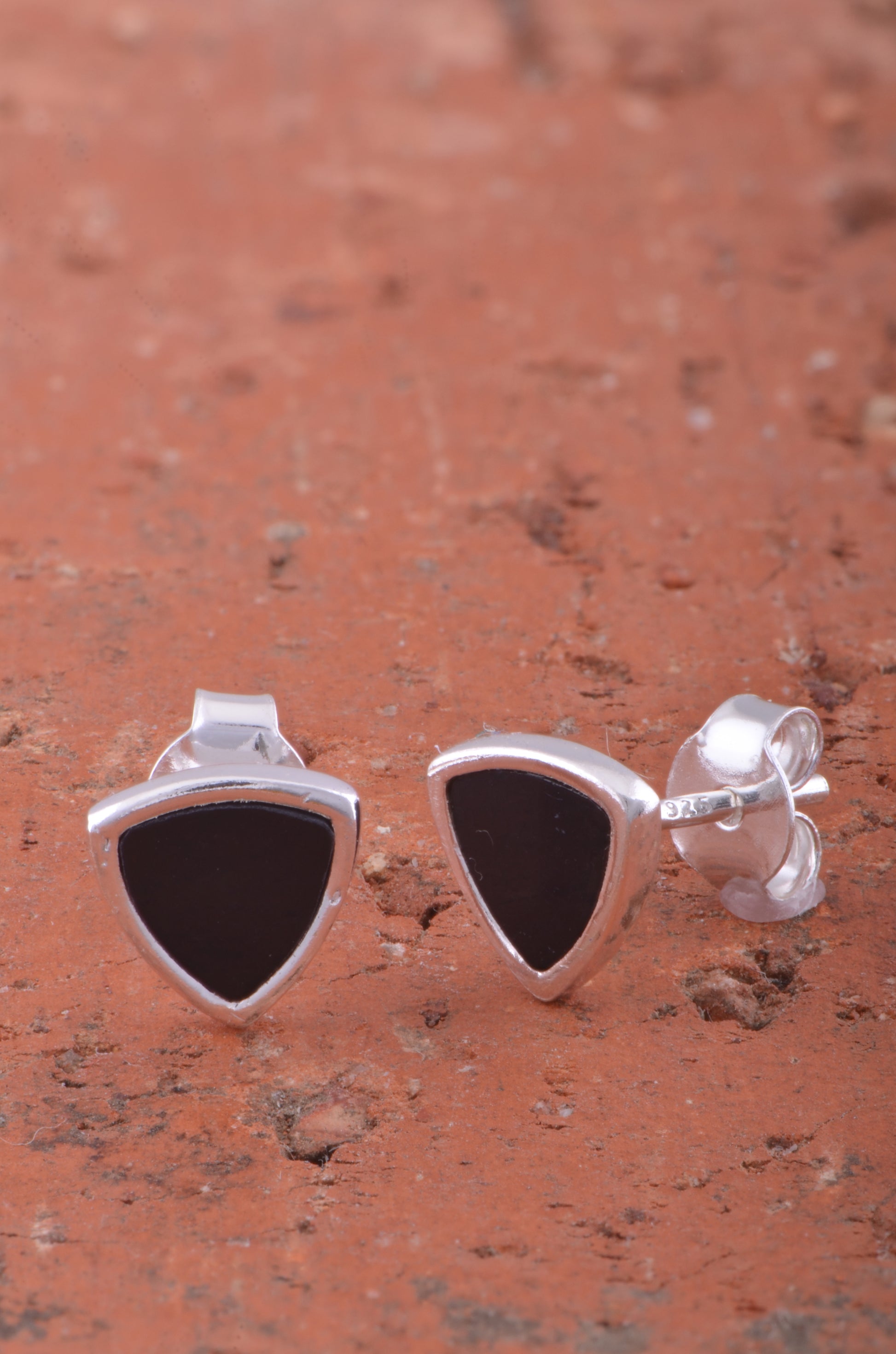 Sterling Silver Black Enamel Womens Dainty Triangle Stud Earrings 8mm
