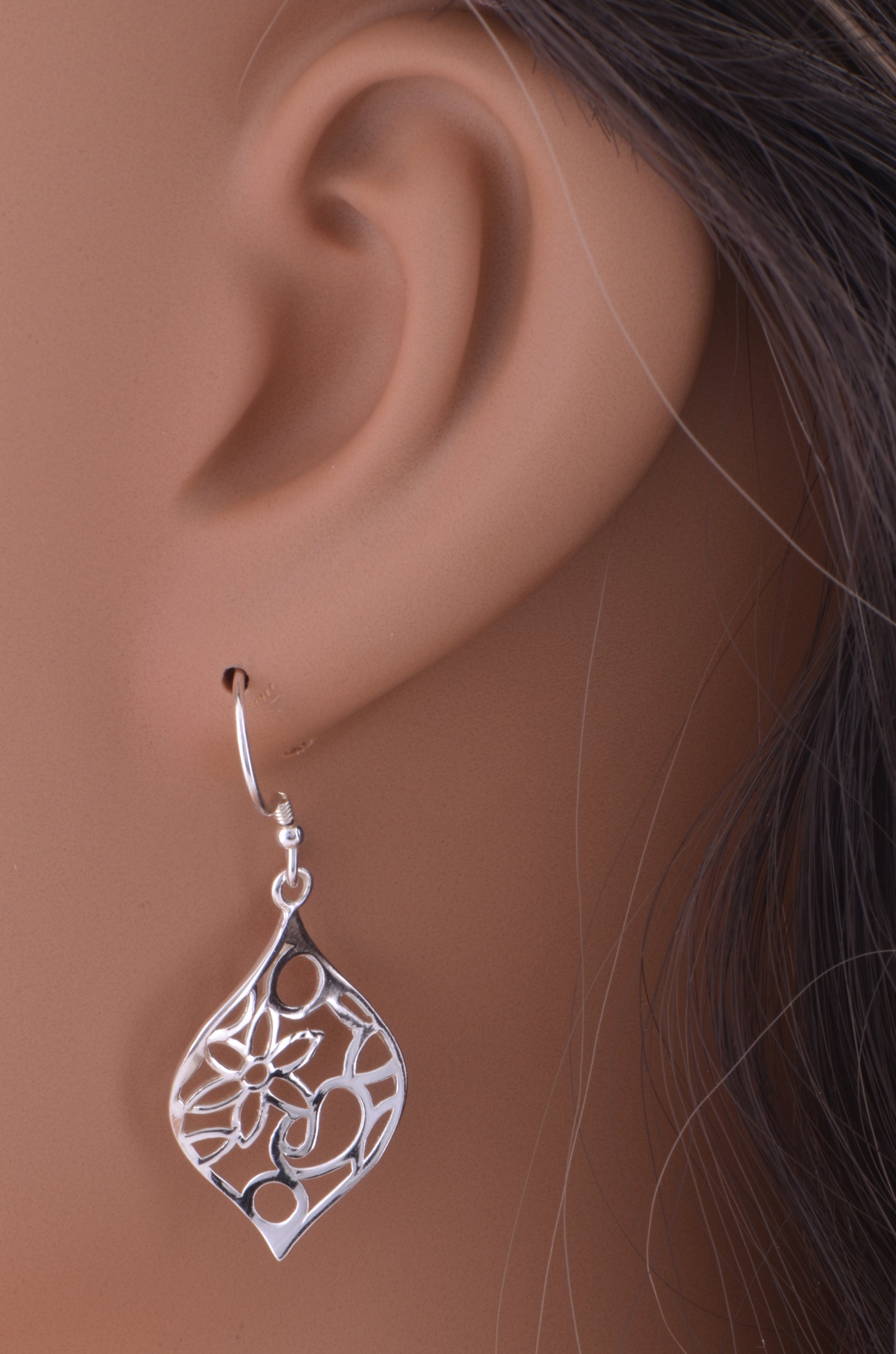 - Design: Retro hipster filigree flower dangle earrings