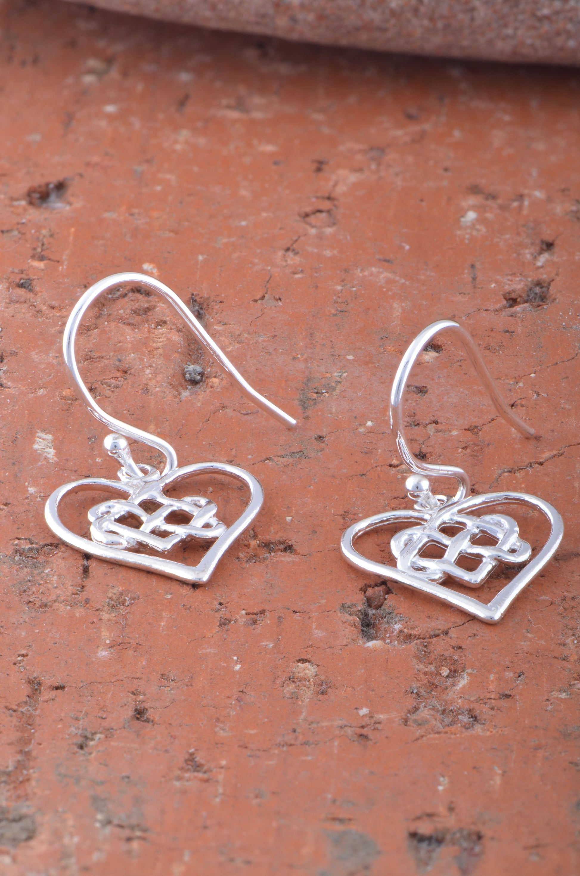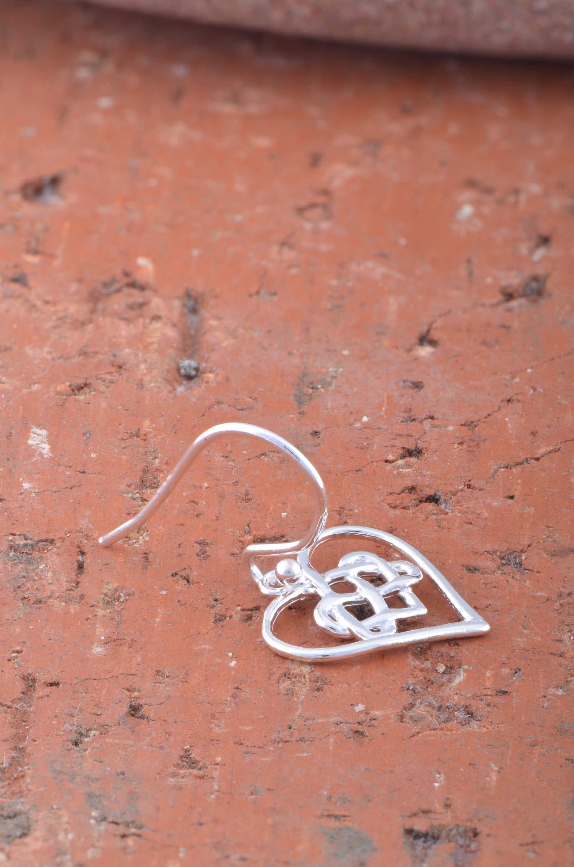 Sterling Silver Girls Dainty Celtic Love Knot Heart Drop Earrings - 15mm