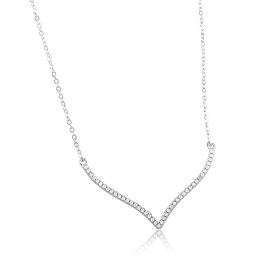Sterling Silver Cz Chevron V Necklace