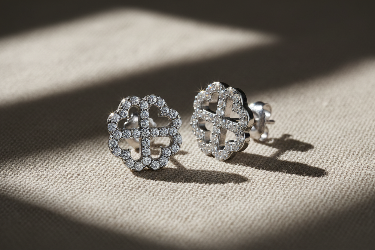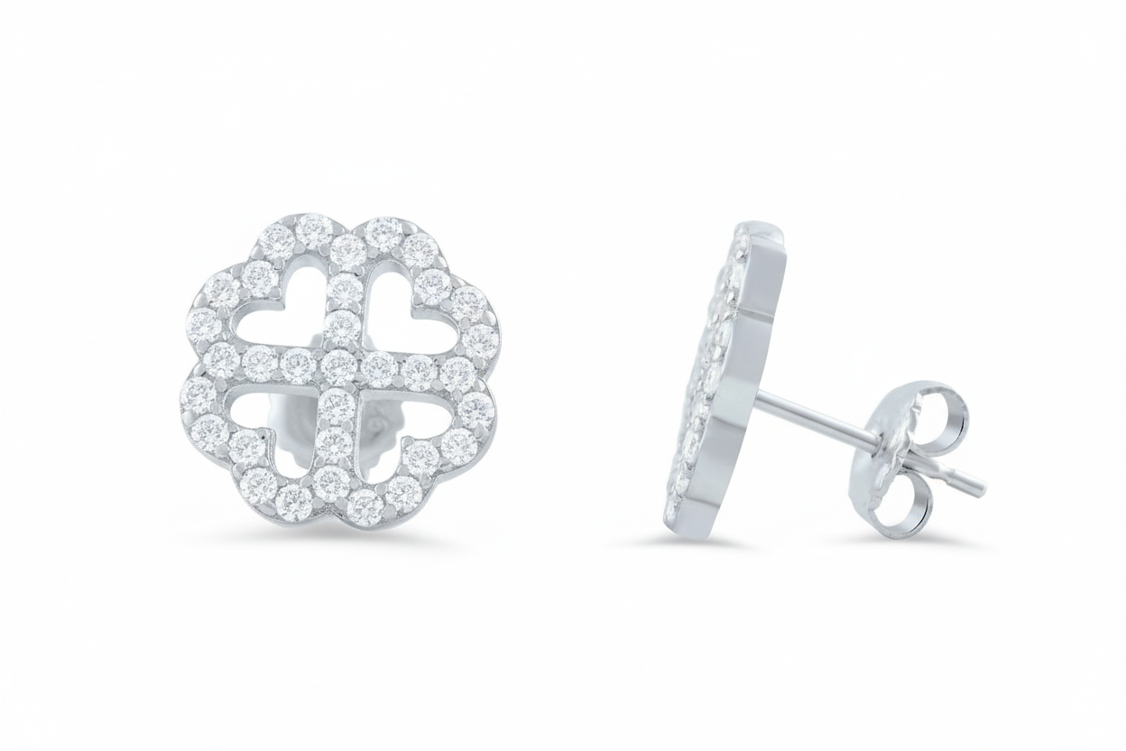 Enhance your style with these Rhodium-Plated Sterling Silver Women's CZ Cubic Zirconia Stud Earrings, featuring a unique blend of lucky clover, heart, and flower motifs. Expertly crafted from durable rhodium-plated sterling silver, each earring sparkles with precision-cut CZ stones, offering lasting brilliance and elegance. The classic stud design ensures secure, comfortable wear throughout the day, perfect for any occasion. Thoughtfully packaged, they make a meaningful gift for moms, wives, or girlfriends, symbolizing luck, love, and beauty in one refined accessory. Add this exquisite piece to her collection for a timeless yet distinctive touch.