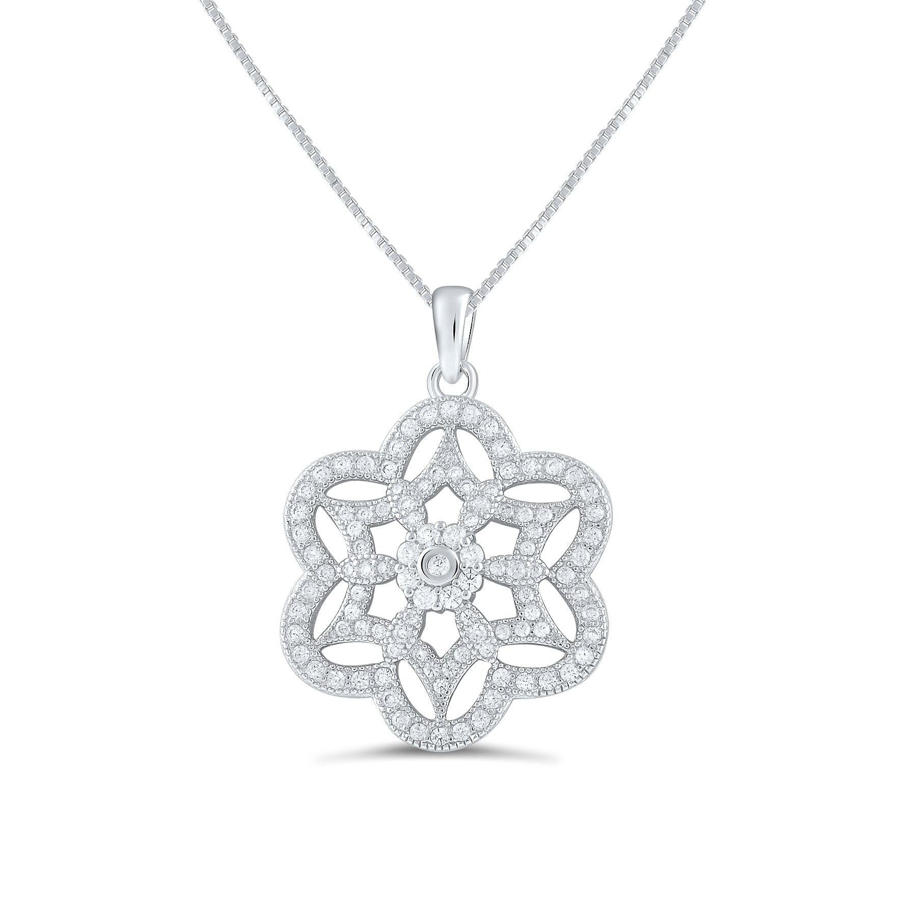 Sterling Silver Cz filigree Flower of Life Necklace 18"