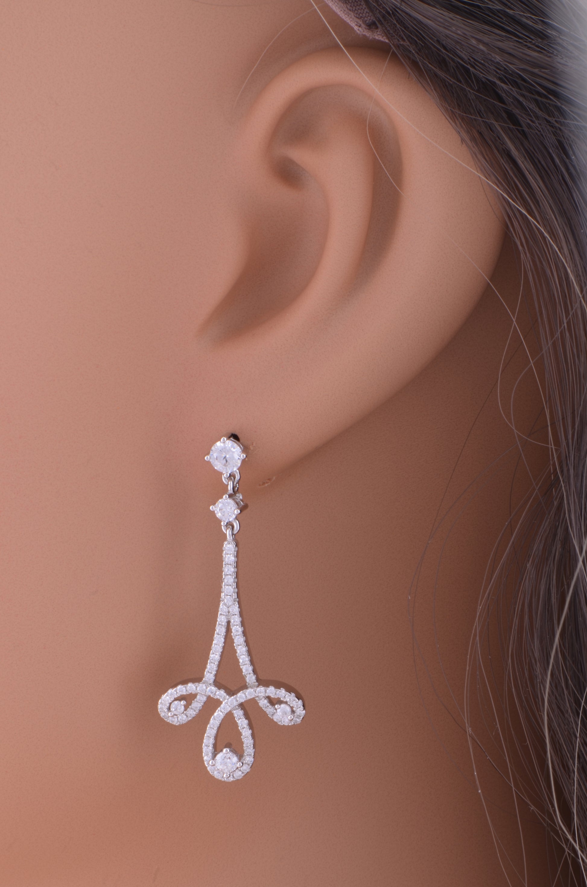 The intricate Fleur de Lis design, combined with the brilliance of the CZ stones, adds a touch of timeless elegance, making these earrings a versatile accessory for any occasion. The rhodium plating ensures a durable and tarnish-resistant finish, maintaining their shine and allure over time. Each pair of White Gold Over Sterling Silver Women's Designer Inspired CZ Fleur de Lis Dangle Earrings comes beautifully packaged in a gift box, making them an ideal present for birthdays, anniversaries, holidays, or any special event.