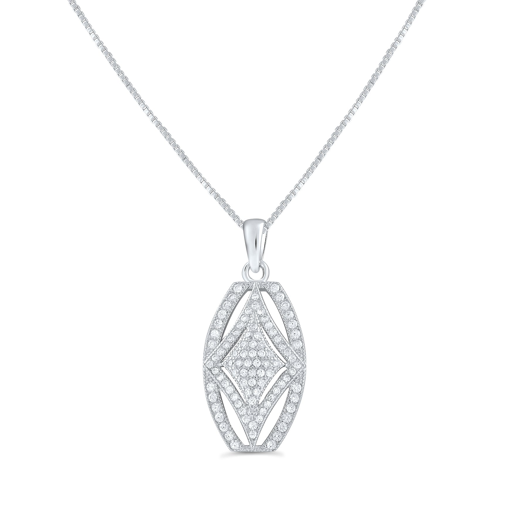 Sterling Silver Cz Rectangle Filigree Charm Necklace 18"