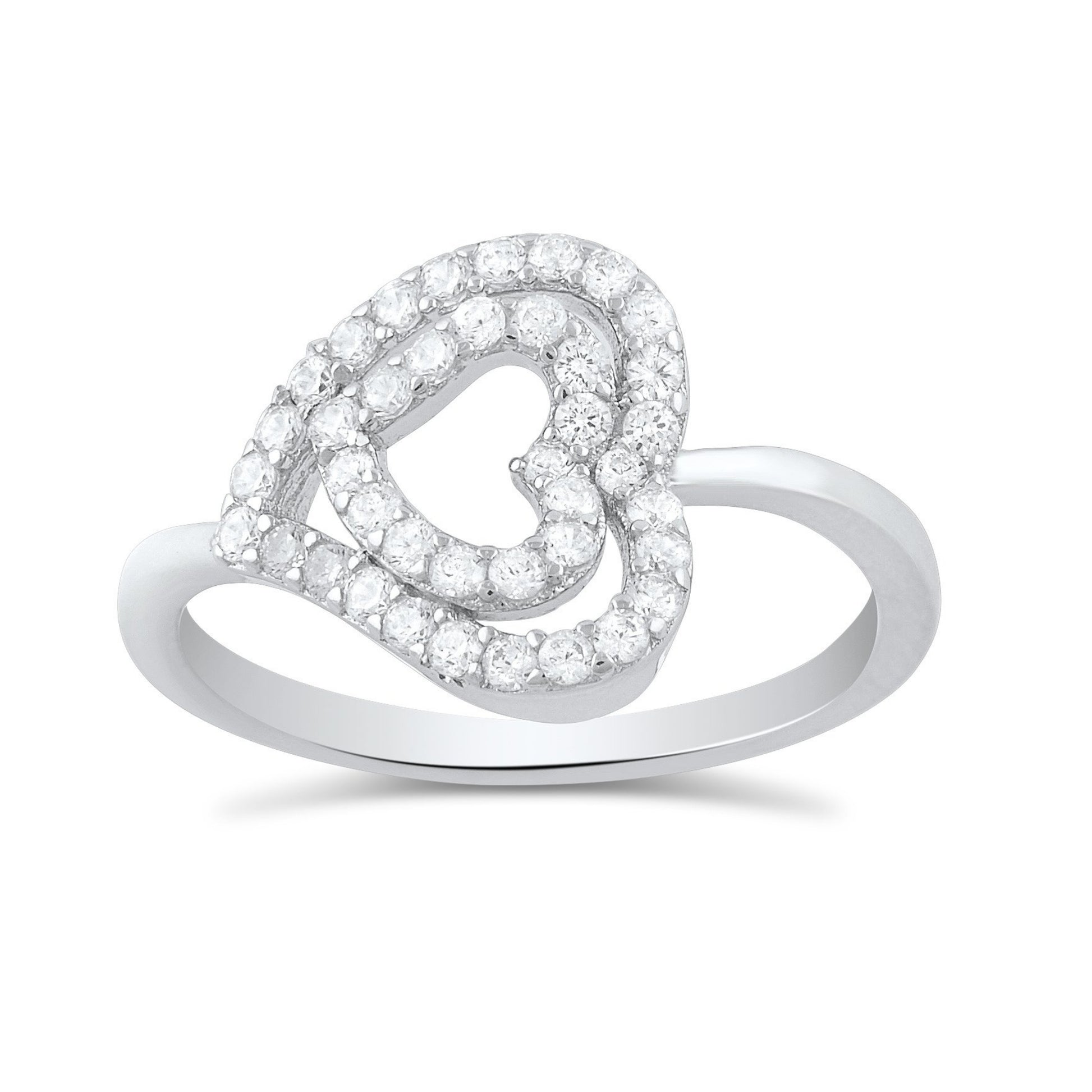 White Gold Over Sterling Silver Womens Dainty Moissanite Sideways Heart Ring