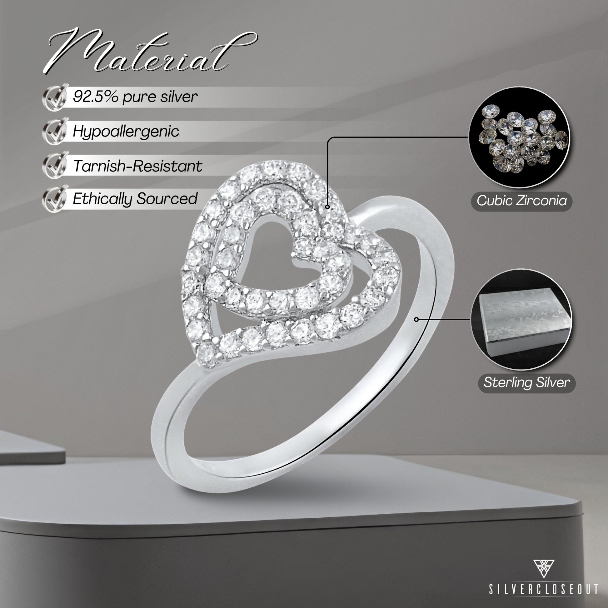 The intricate sideways heart design, combined with the brilliance of white gold over sterling silver and the radiant sparkle of Moissanite stones, makes this ring a versatile accessory that complements any outfit. Each White Gold Over Sterling Silver Women's Dainty Moissanite Sideways Heart Ring comes beautifully packaged in a gift box, making it an excellent choice for birthdays, anniversaries, holidays, or any special event.