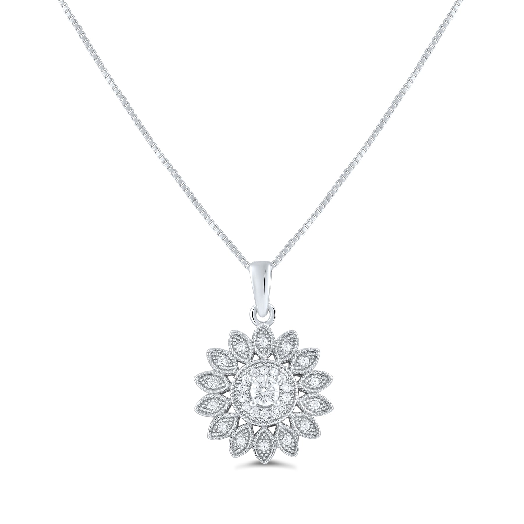 Sterling Silver Cz Sunflower Charm Necklace 18"