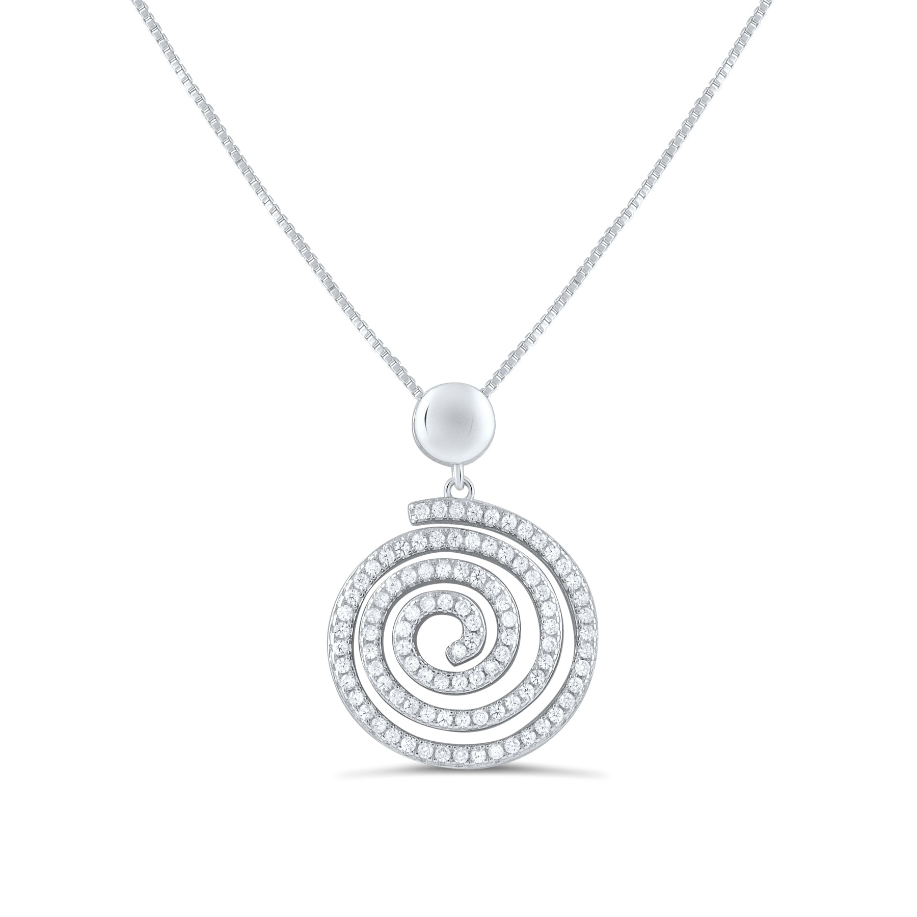 Sterling Silver Cz Swirl Spiral Necklace 18"