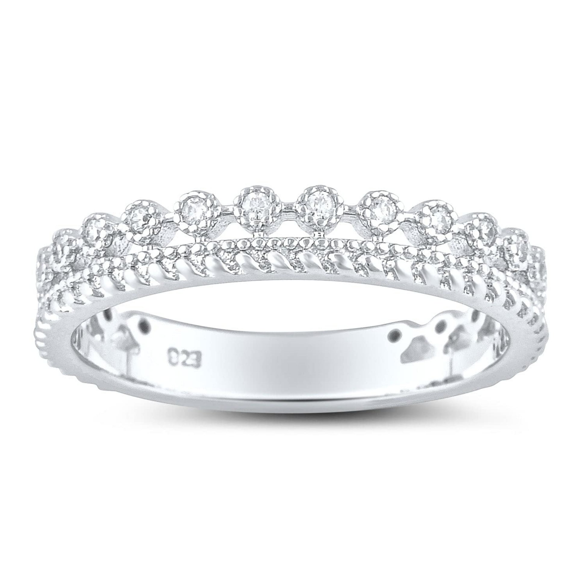 White Gold Over Sterling Silver Women's Thin Double Row Cz Eternity Band