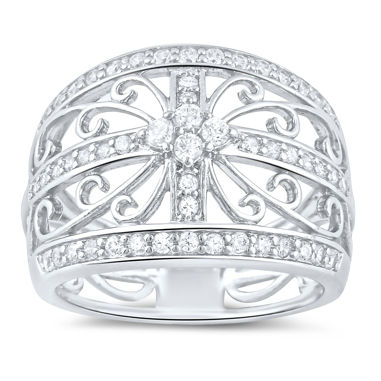 Sterling Silver Filigree Flower Cz Ring (Size 4-11)