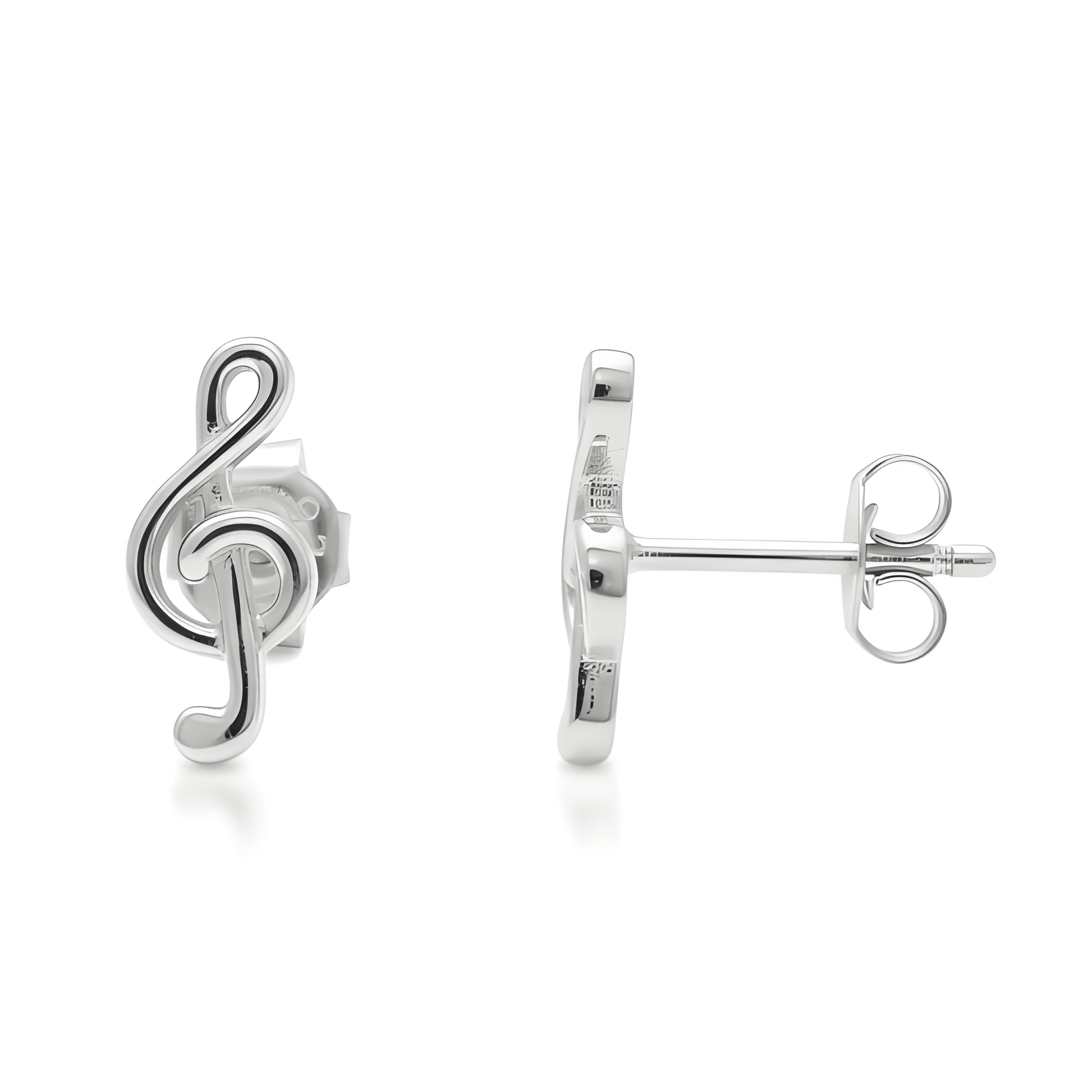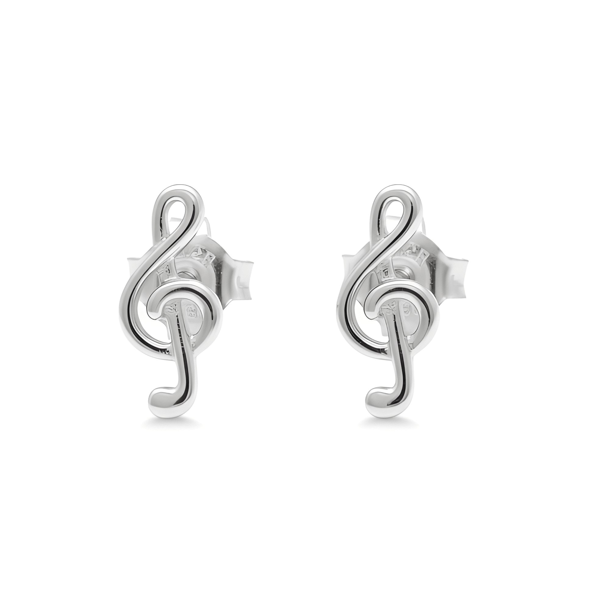 Sterling Silver G-clef Music Note Stud Earrings - 11mm