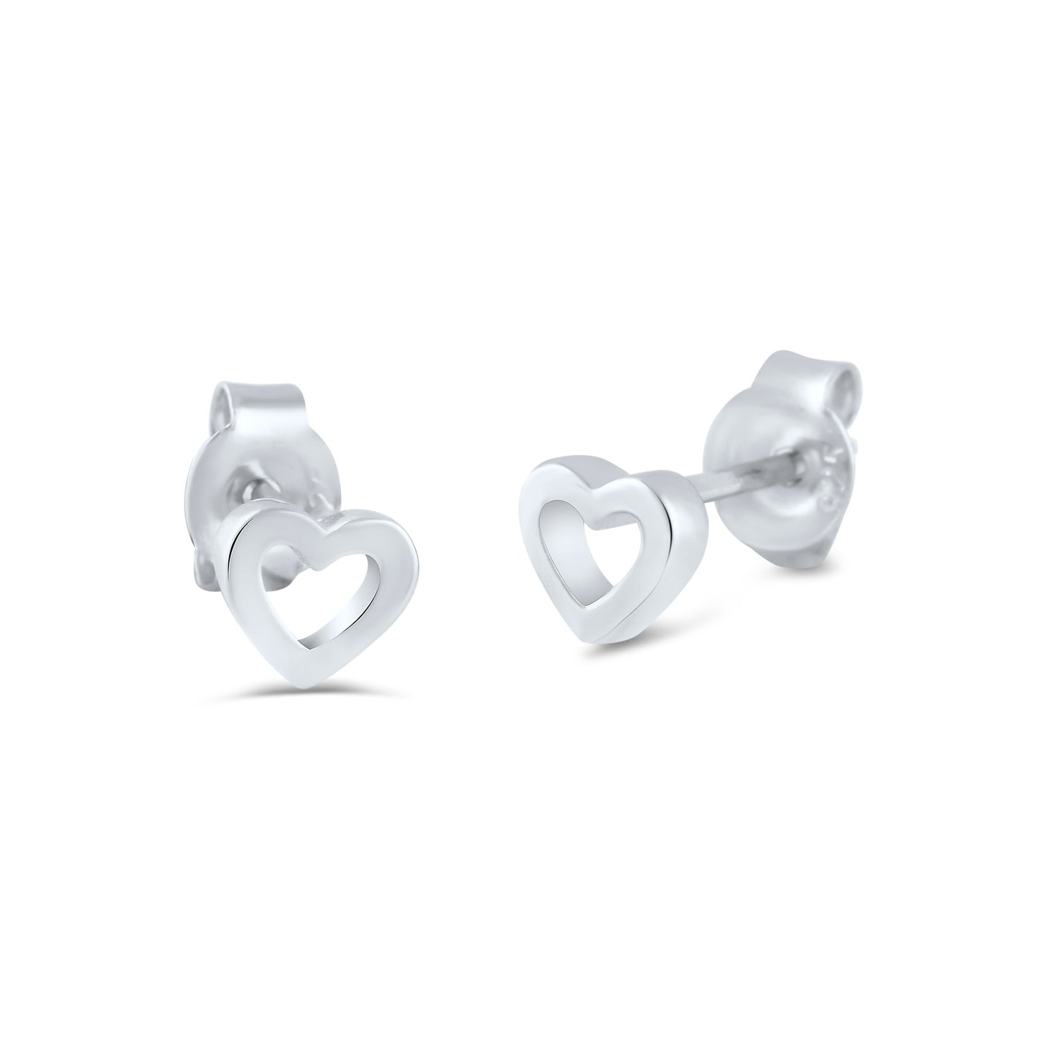 Sterling Silver Hollow Heart Stud Earrings - 4mm