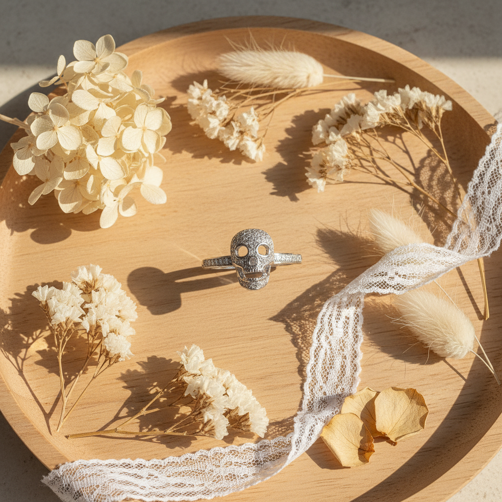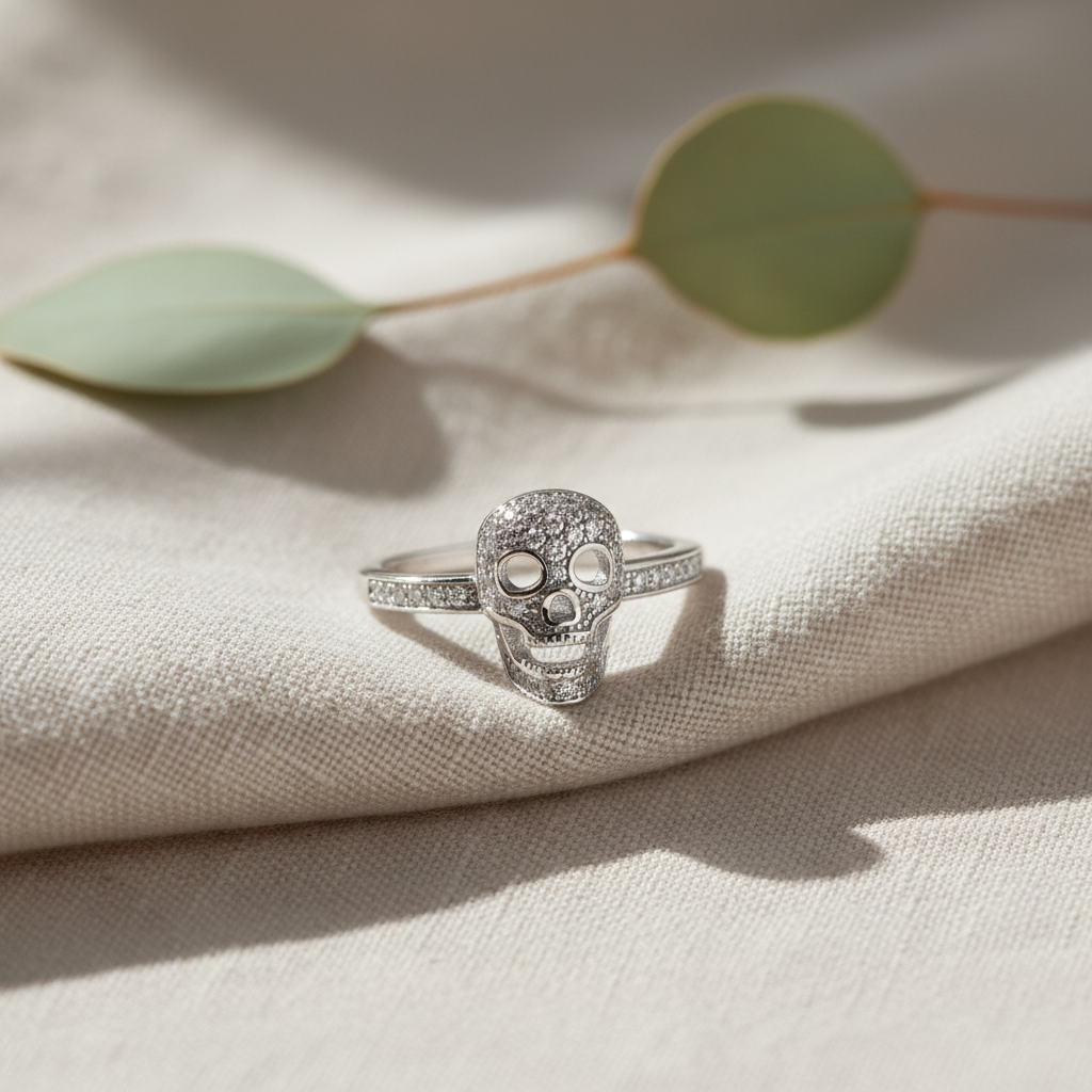 White Gold Dipped Sterling Silver Womens Micro Pave Cz Skull Ring
