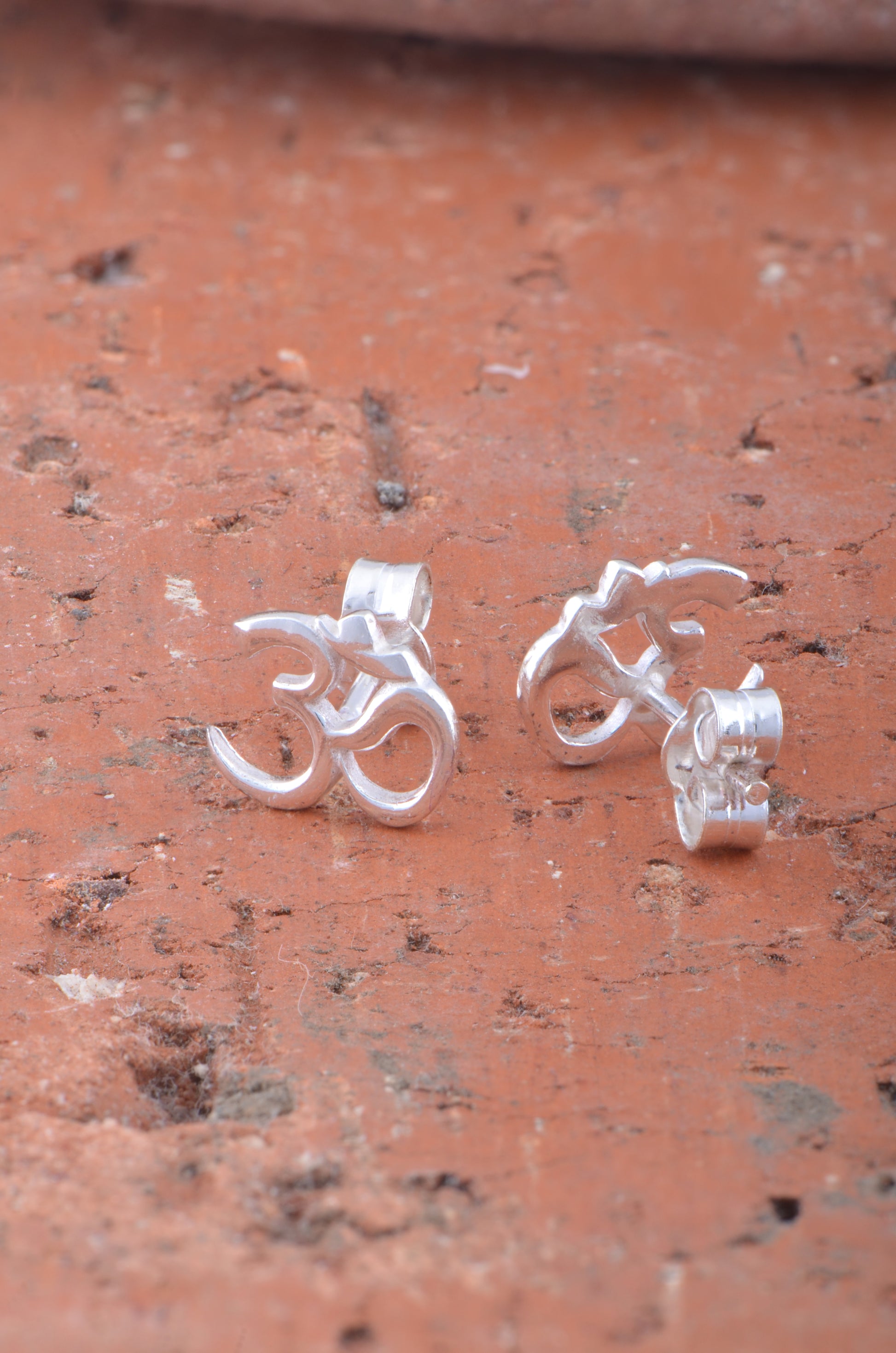 Sterling Silver Womens Dainty Hindu Om Symbol Stud Earrings