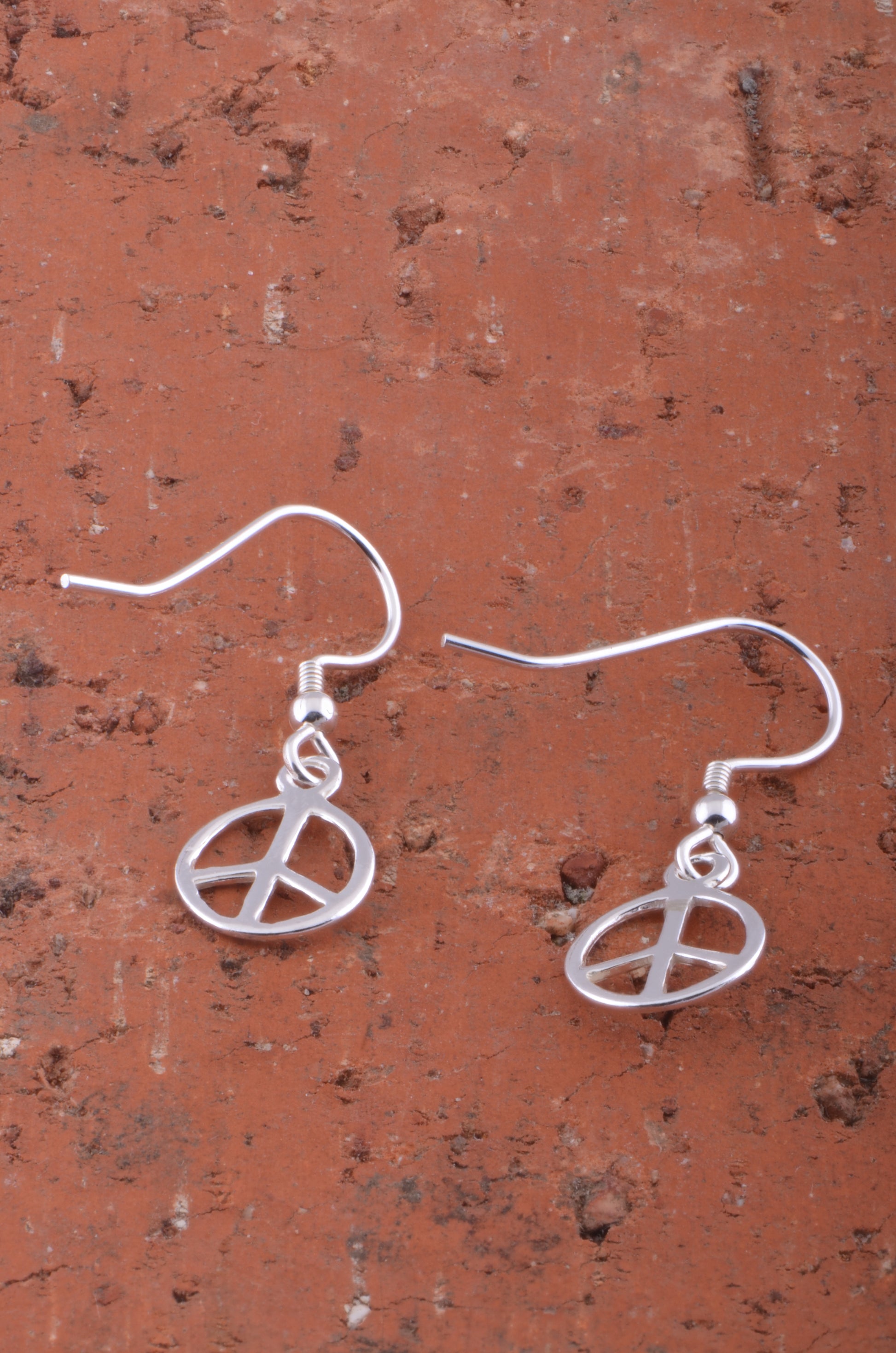 Sterling Silver Grils Dainty Peace Sign Dangle Earrings