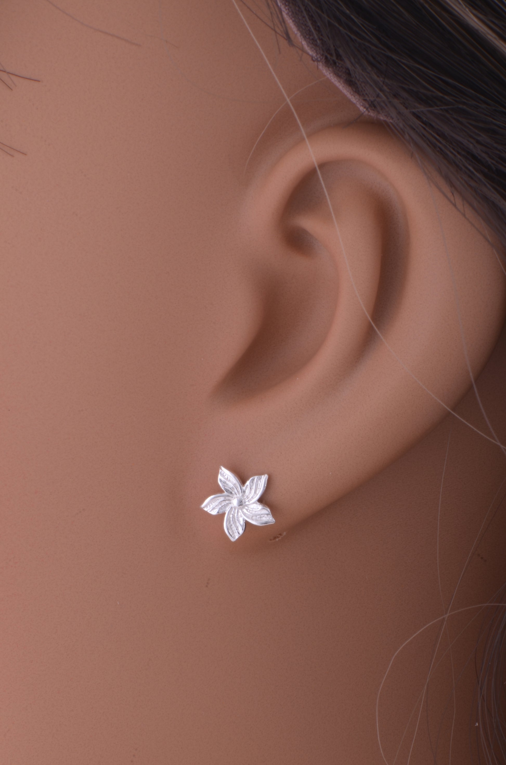 Sterling Silver Girls Small Hawaiian Plumeria Flower Stud Earrings