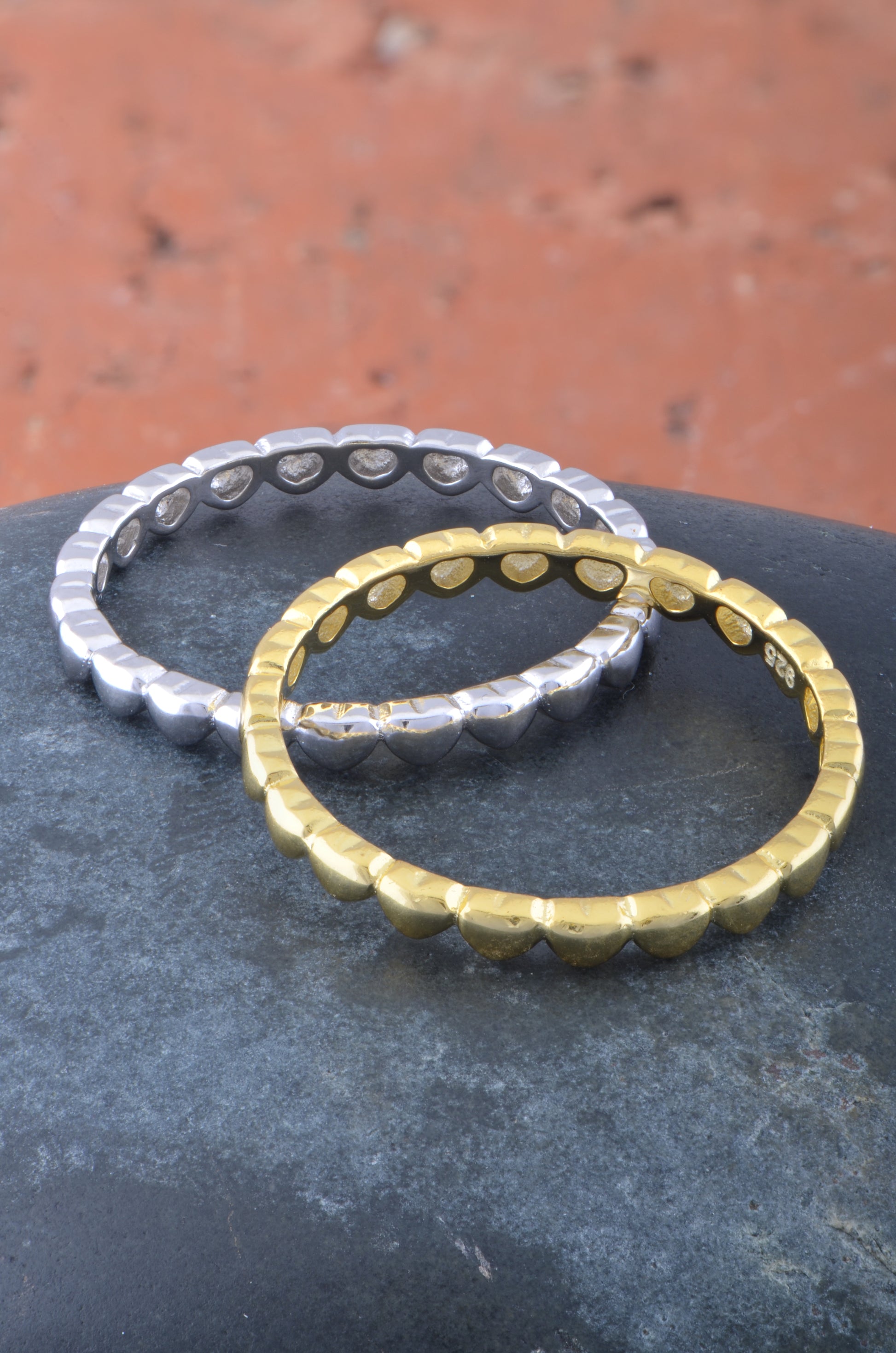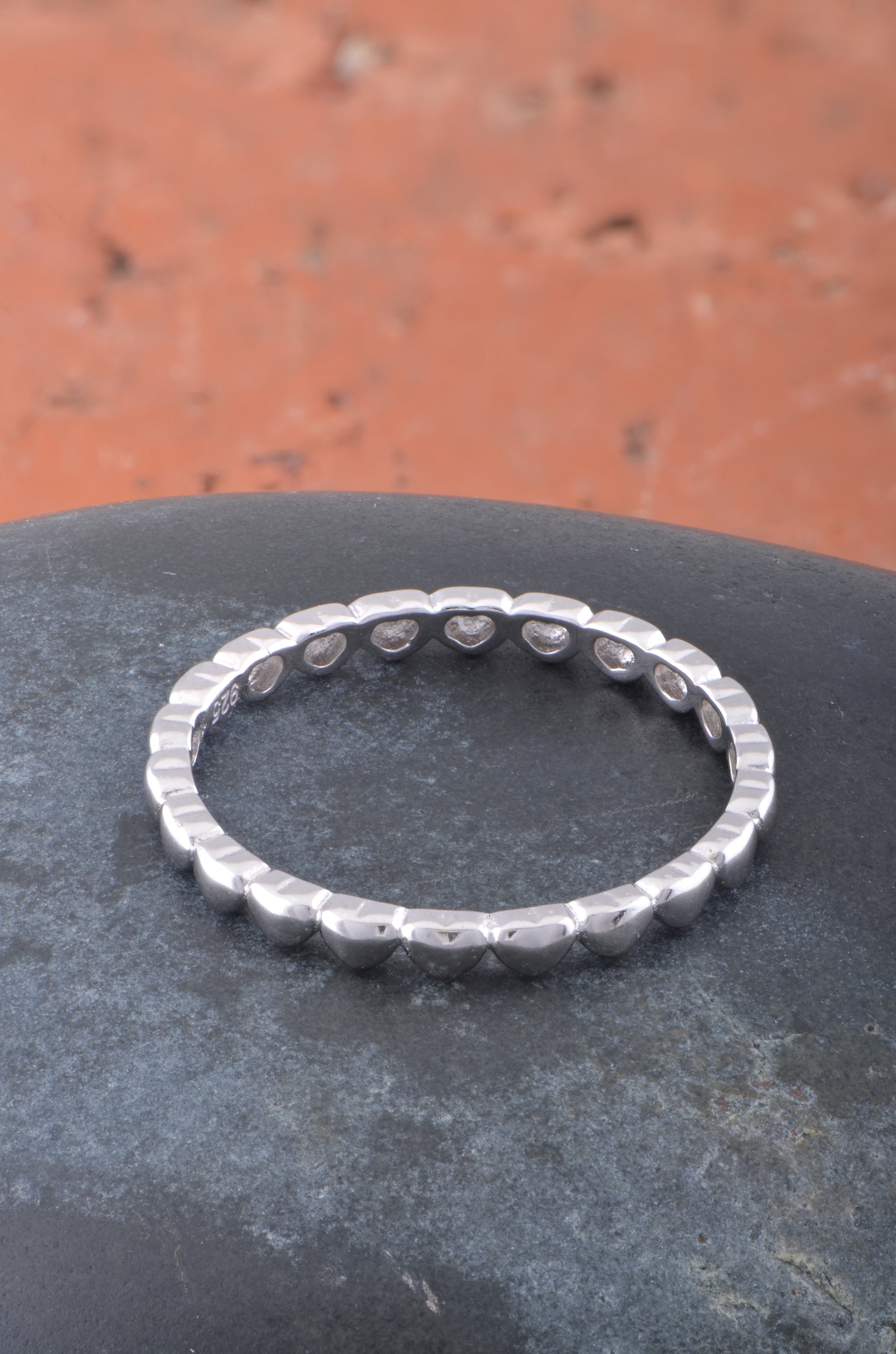 Celebrate love and elegance with the White Gold Over Sterling Silver Women's Repeating Heart Thin Eternity Band. Crafted from high-quality rhodium-plated sterling silver, this delicate ring features a beautiful repeating heart design that encircles the entire band. Measuring 2mm in width, this thin eternity band is perfect for stacking or wearing alone, offering versatile styling options.