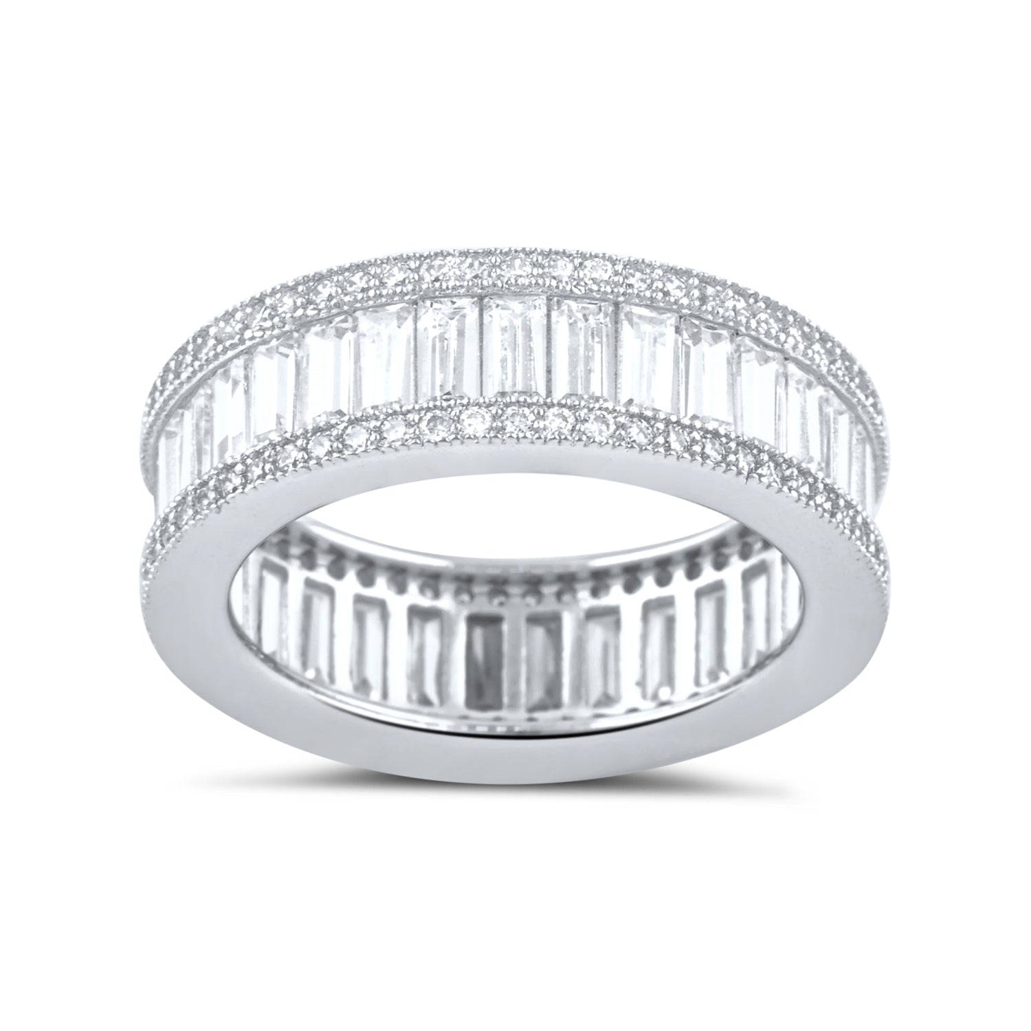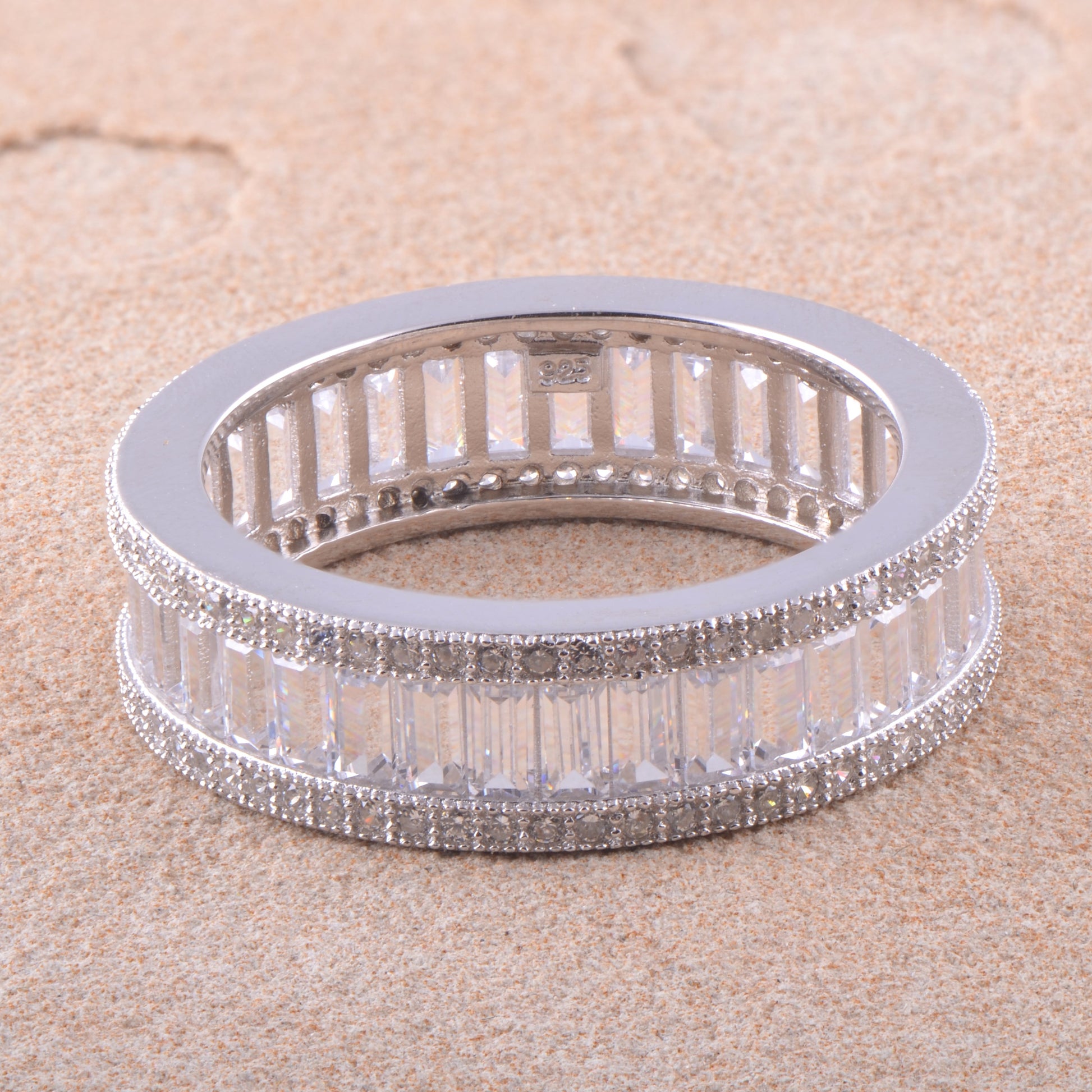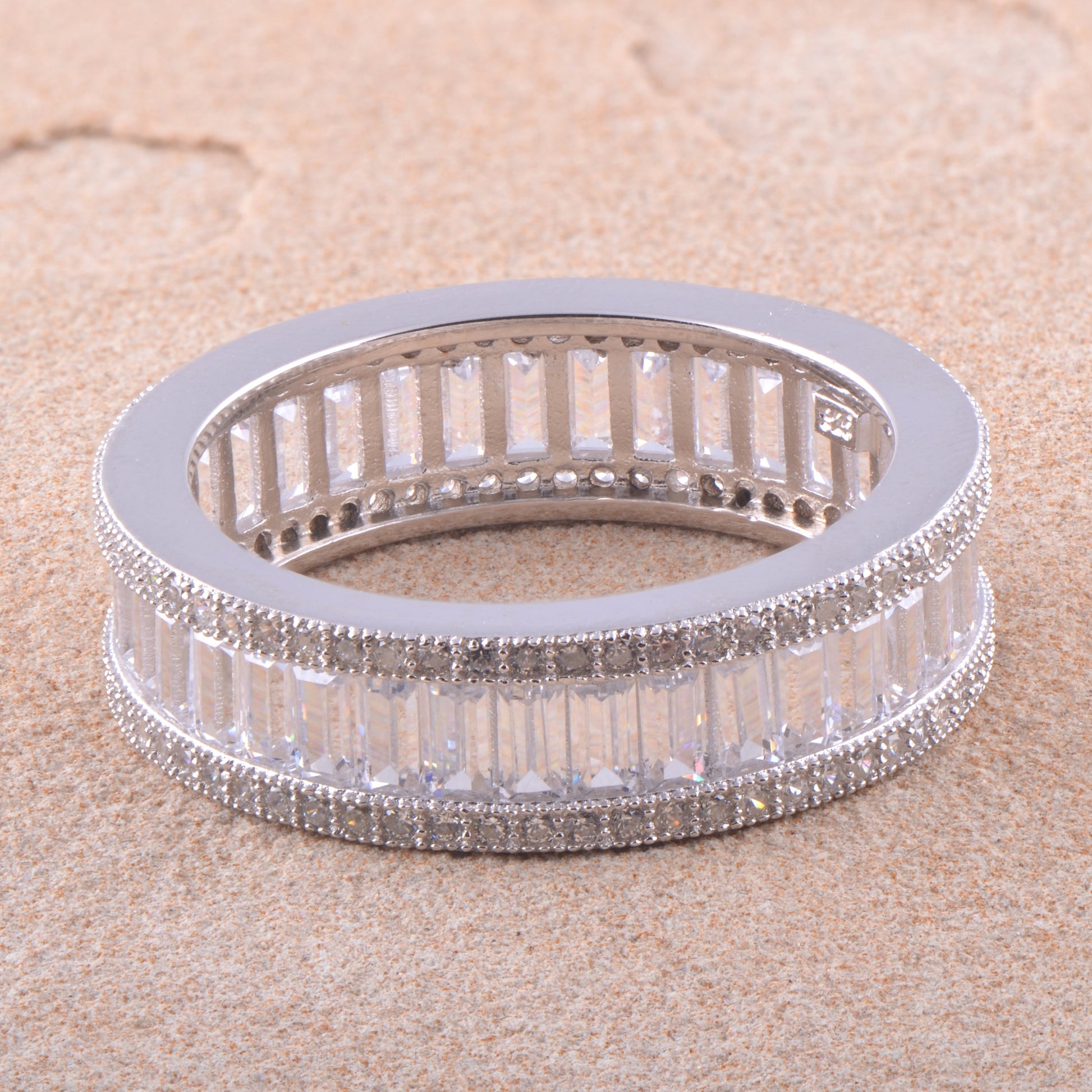 - Design: Wide eternity ring with baguette and round cubic zirconia (CZ) stones