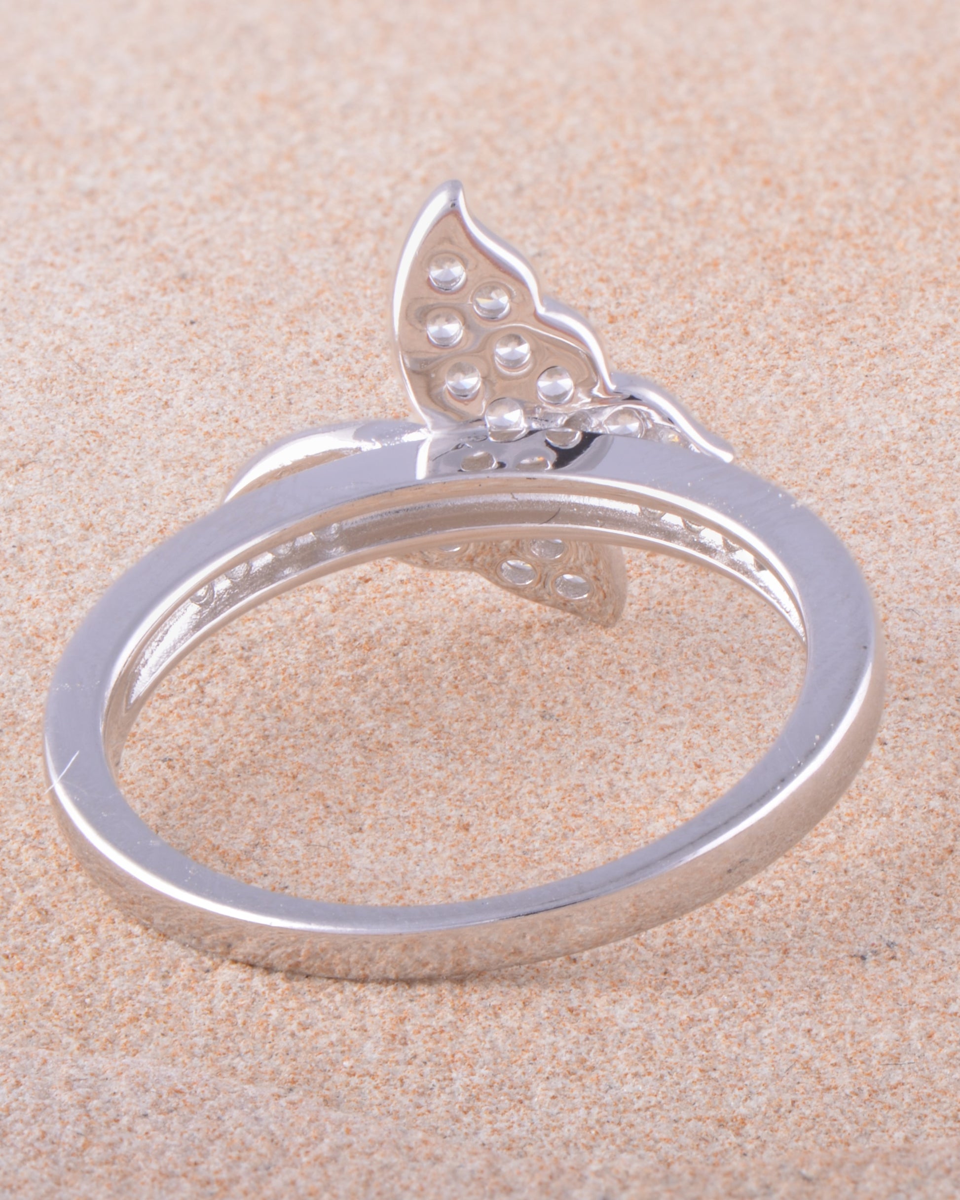 White Gold Over Sterling Silver Moissanite Butterfly Ring