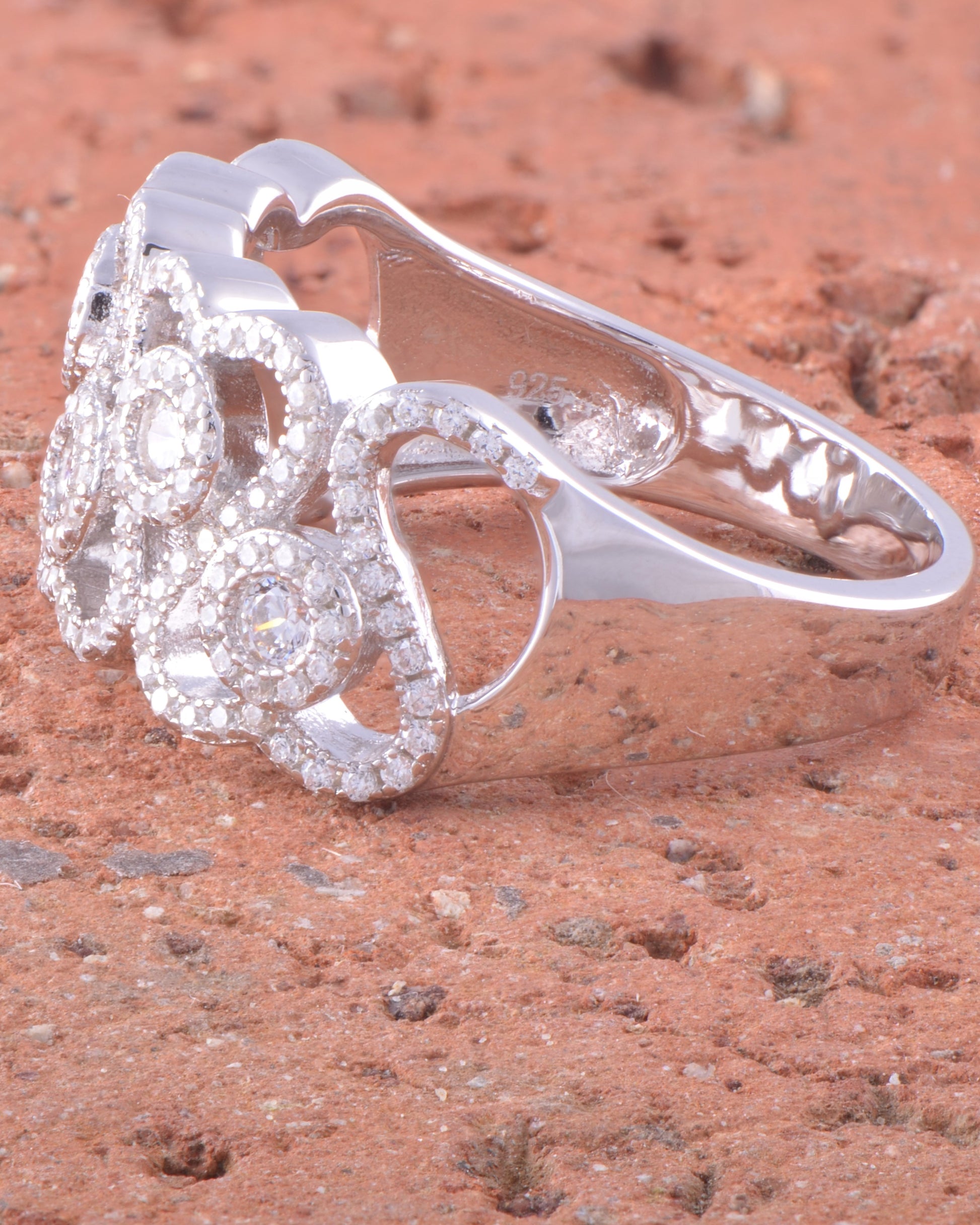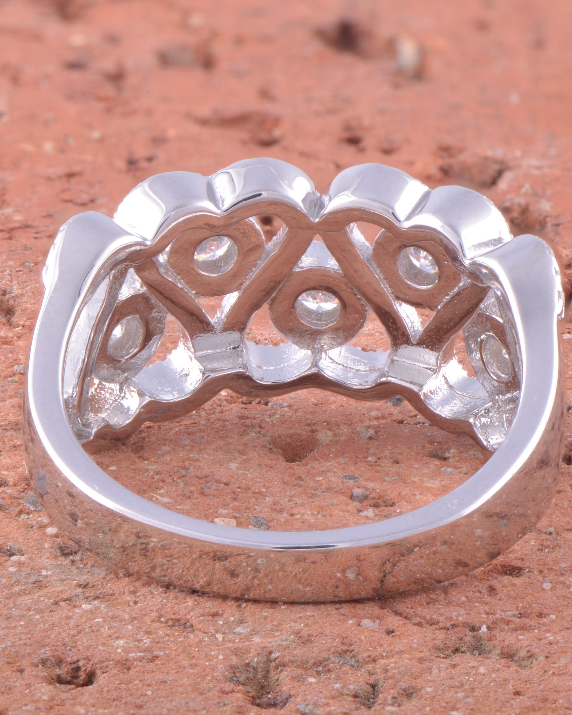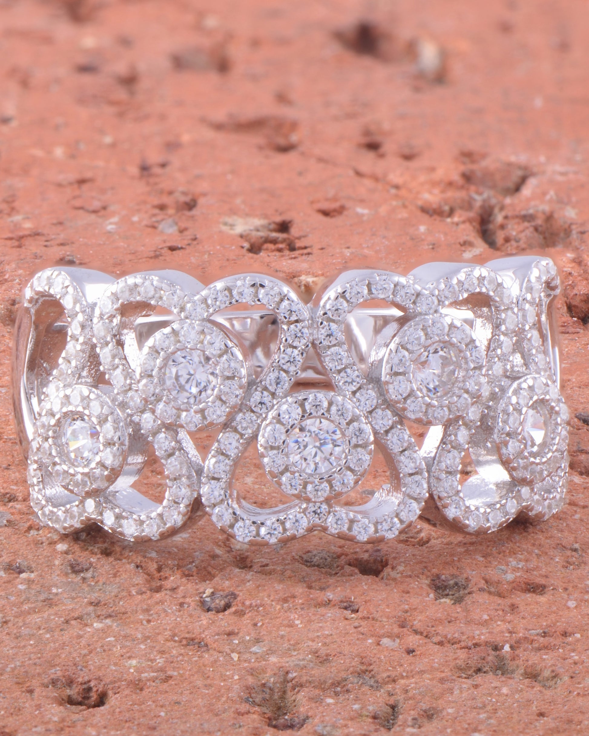 White Gold Over Sterling Silver Womens Chunky Cz Repeating Heart Ring