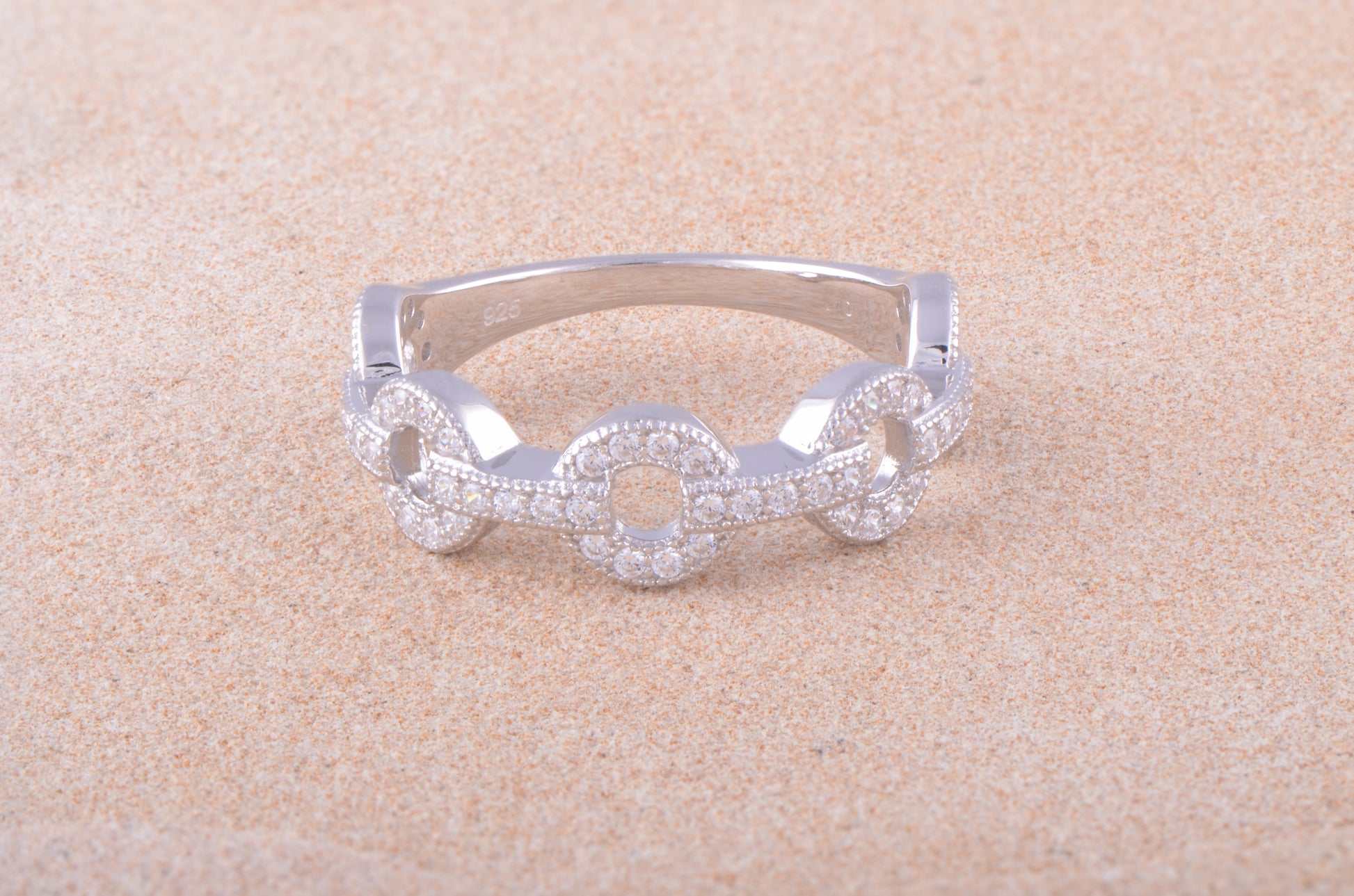 The anchor chain design, combined with the brilliance of the CZ stones, adds a touch of nautical charm and modern elegance, making this ring a versatile accessory for any occasion. The rhodium plating ensures a durable and tarnish-resistant finish, maintaining its shine and allure over time. Each White Gold Over Sterling Silver Ladies CZ Anchor Chain Ring comes beautifully packaged in a gift box, making it an ideal present for birthdays, anniversaries, holidays, or any special event.