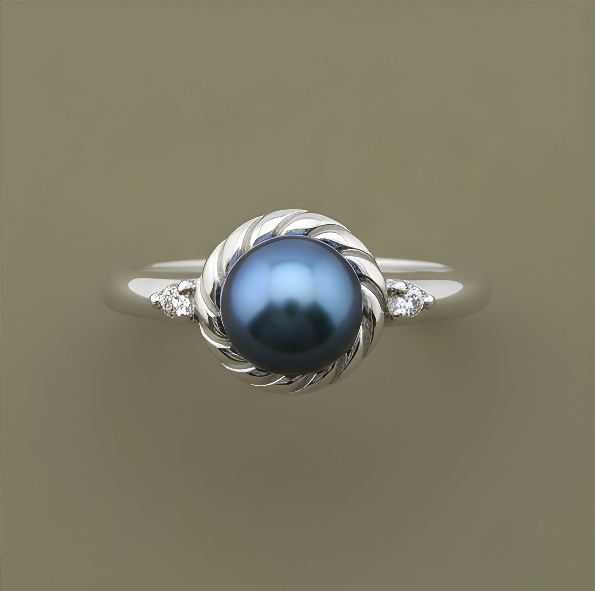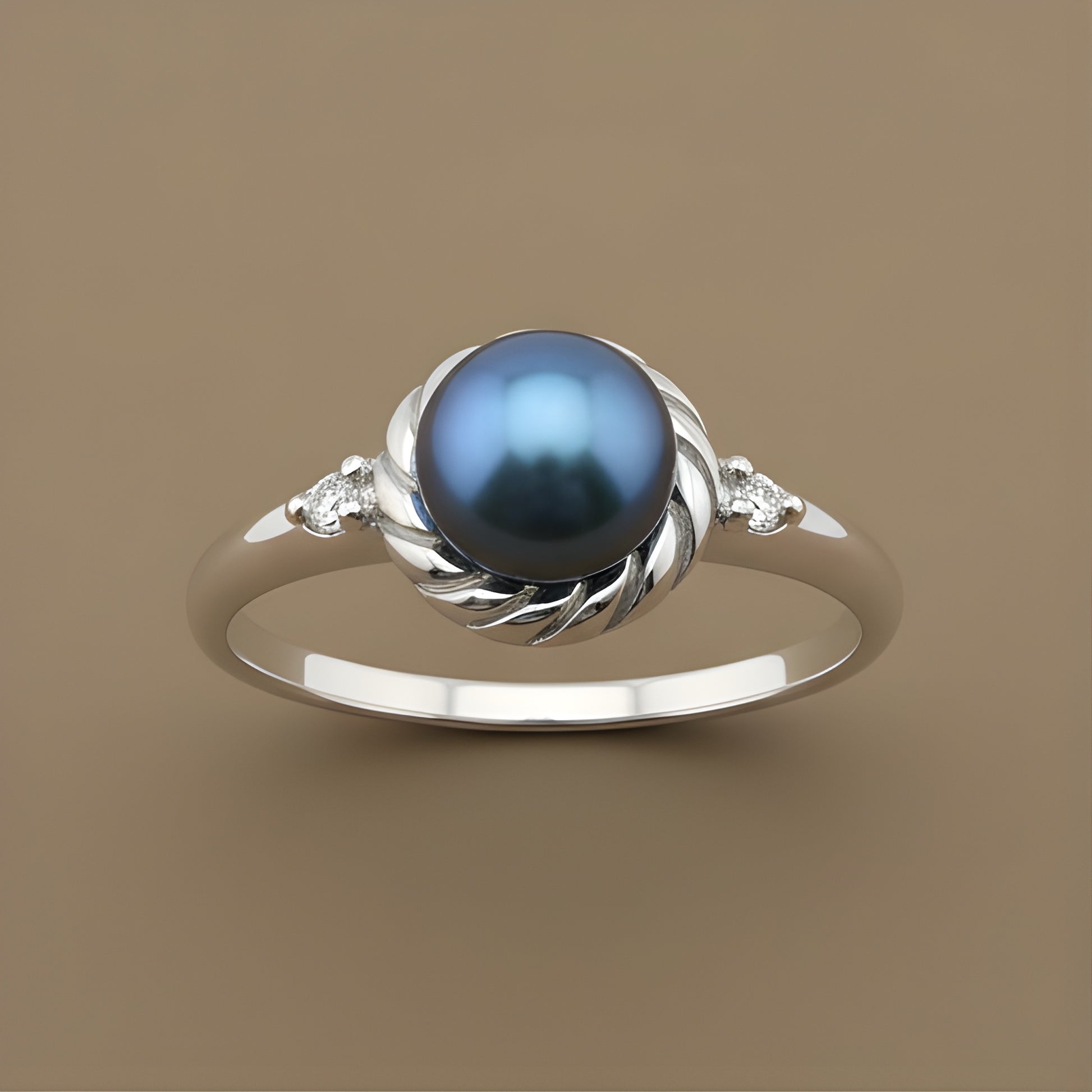 Crafted from 925 sterling silver, this 9mm wide ring features a simulated Tahitian pearl centerpiece. It is elegantly presented in a gift box, combining classic design with refined sophistication.
