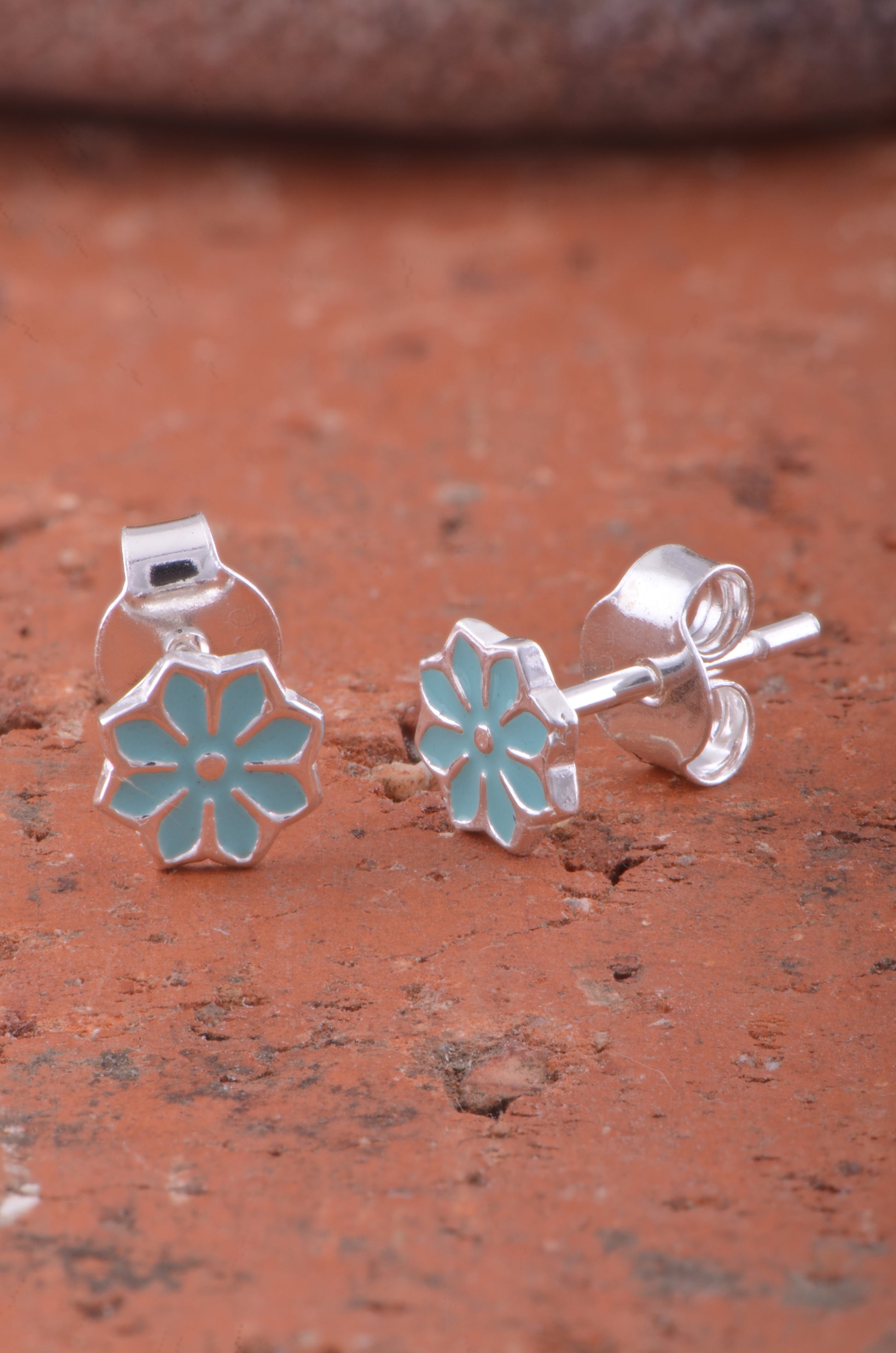 Sterling Silver Ladies Small Blue Hindu Lotus Flower Stud Earrings