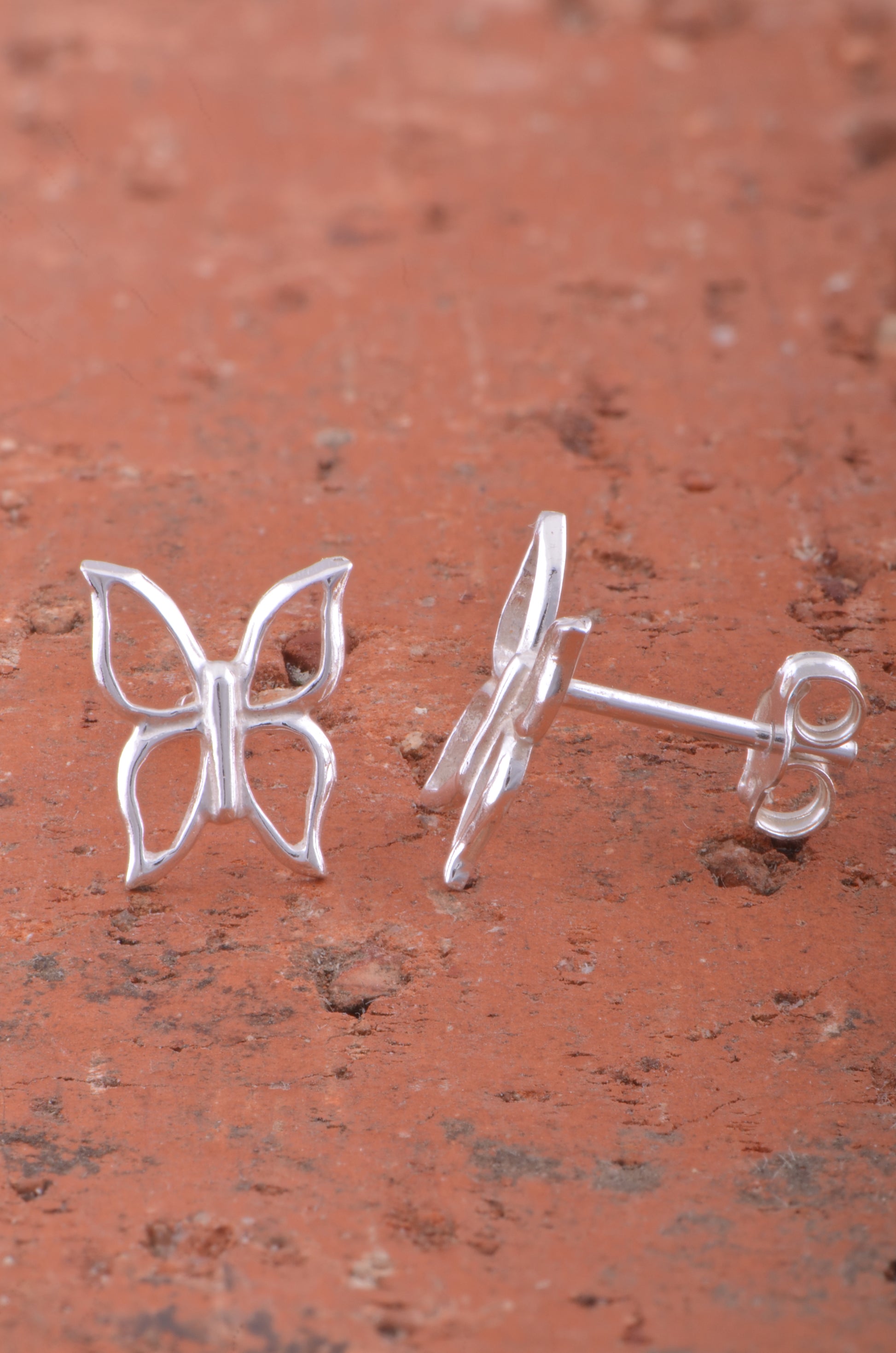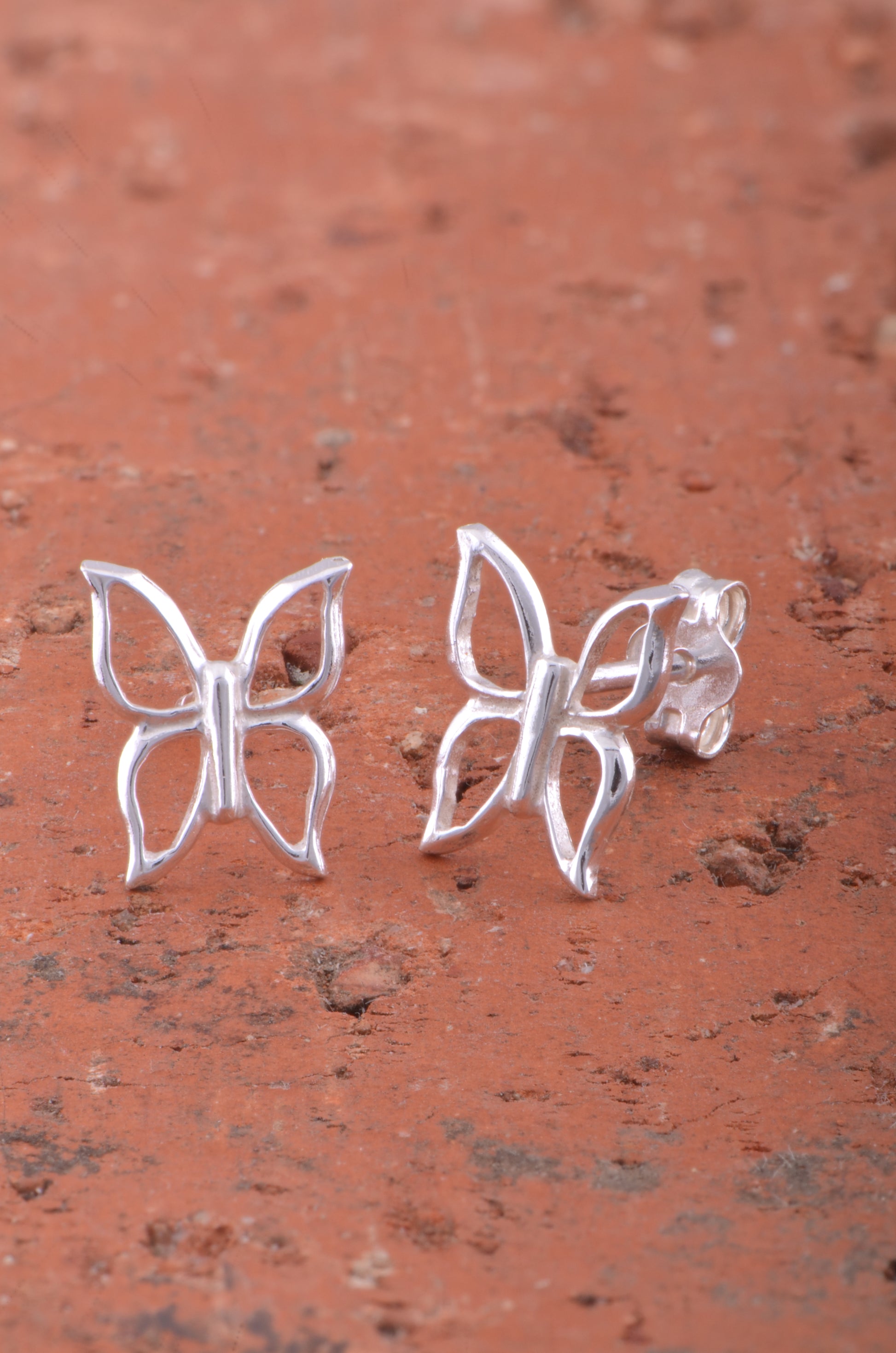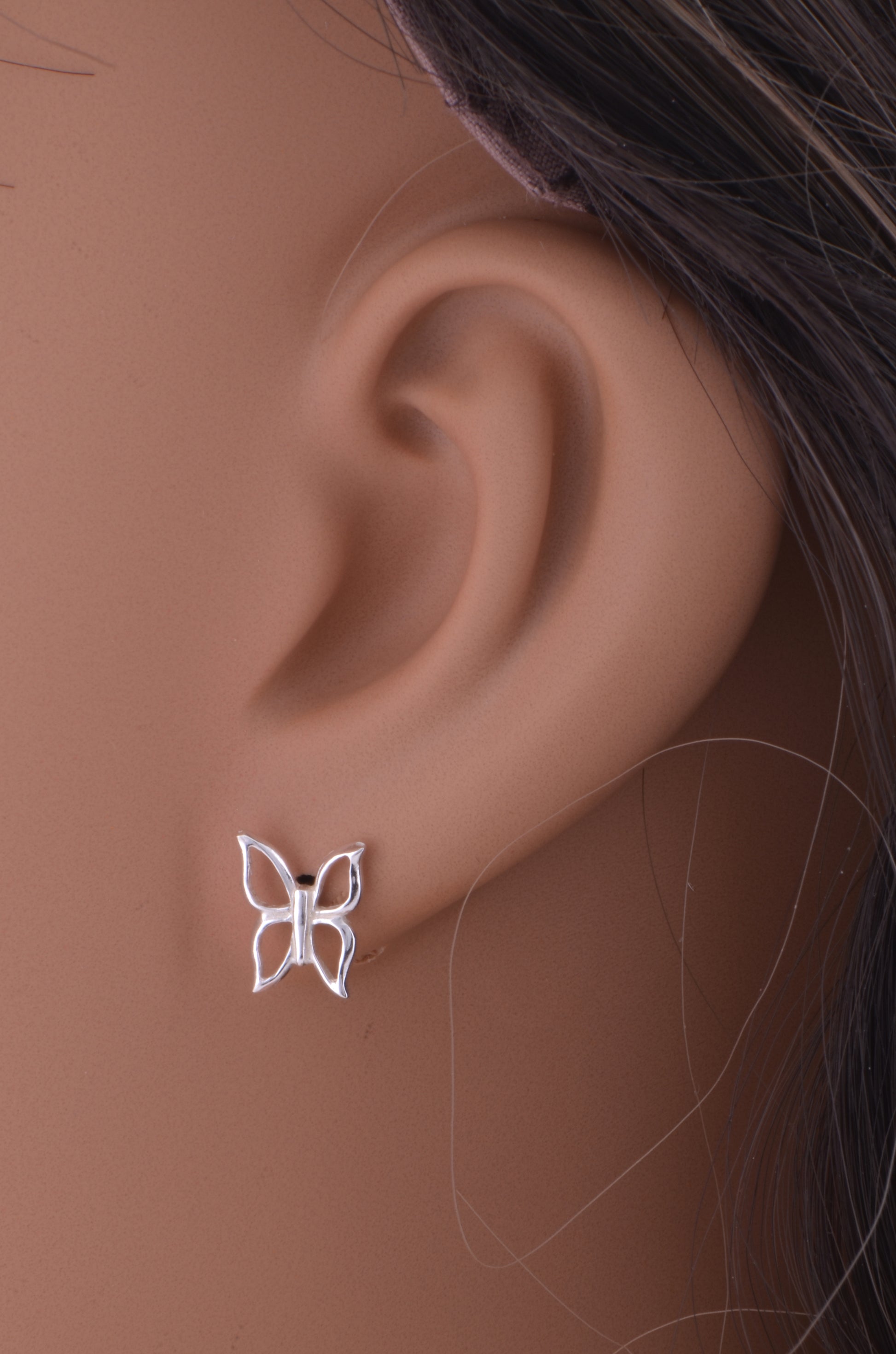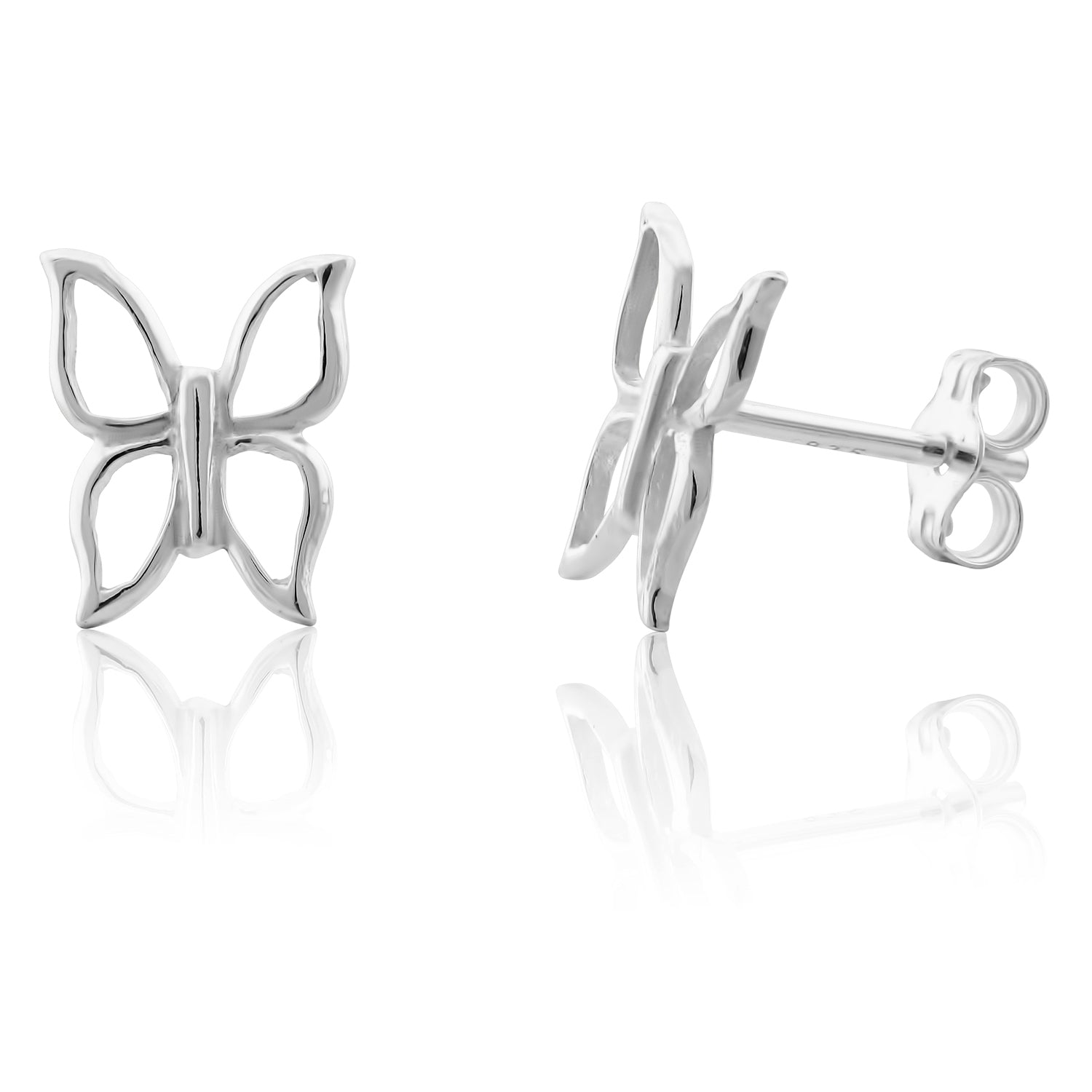 Sterling Silver Womens Dainty Hollow Butterfly Stud Earrings 8mm