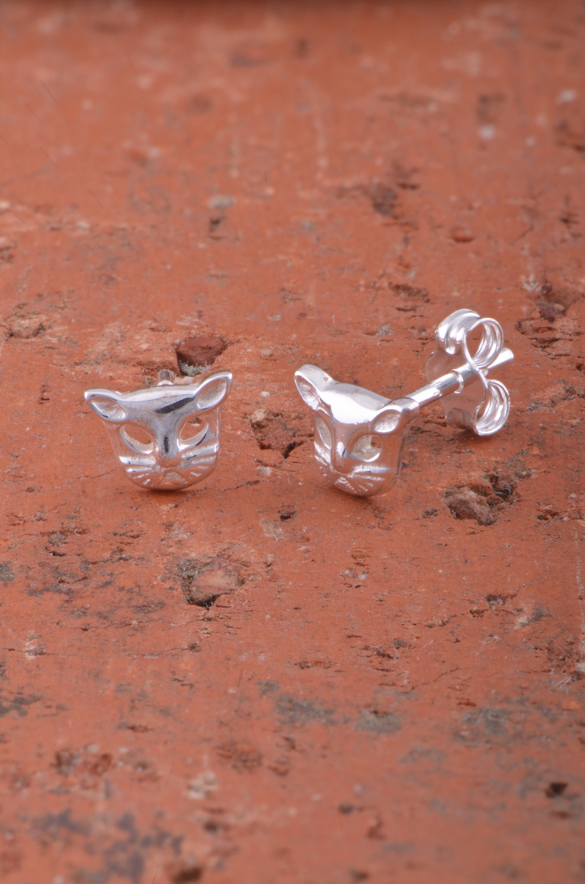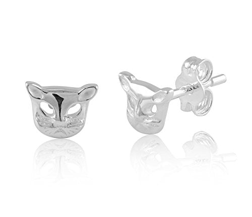 Sterling Silver Girls Dainty Cat Stud Earrings