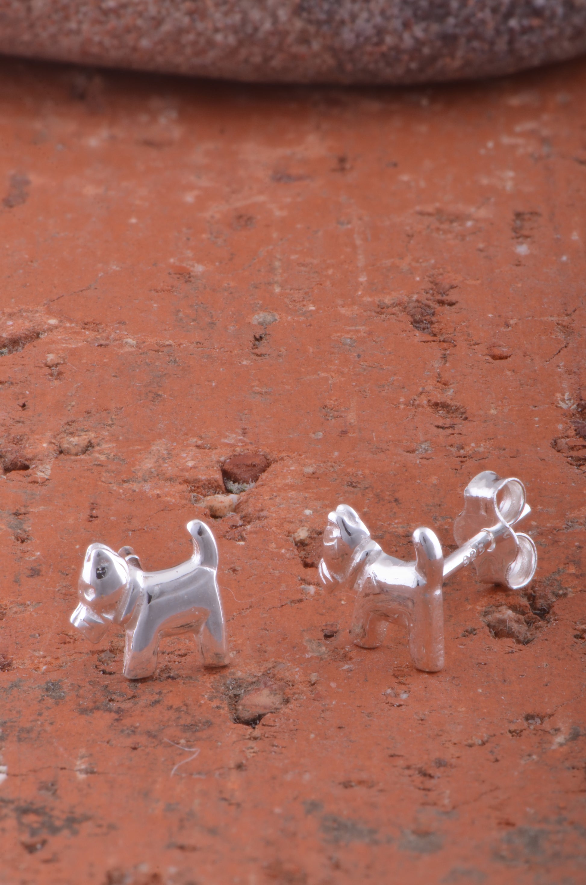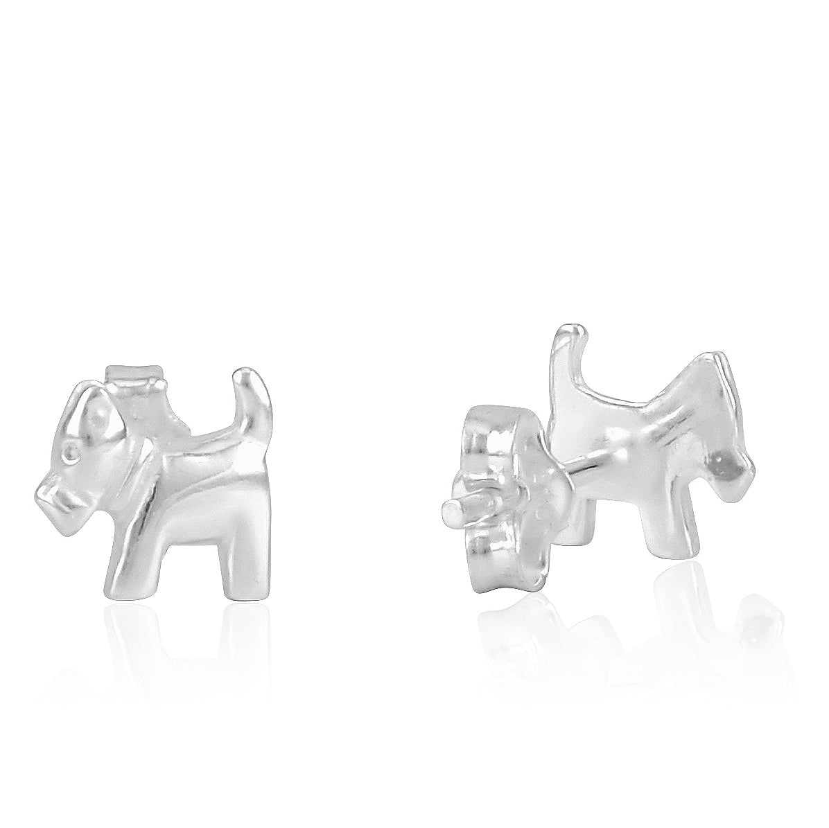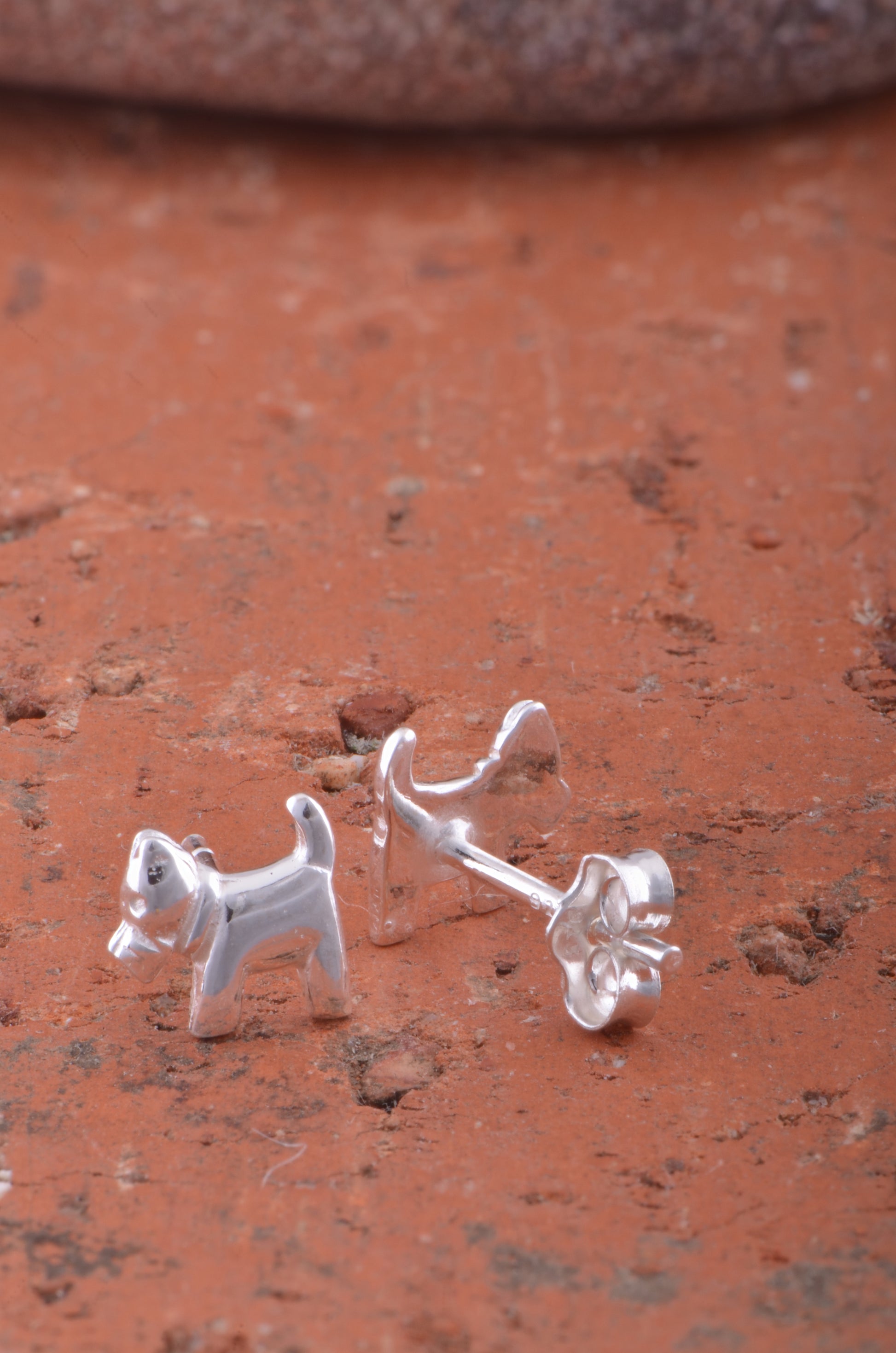Sterling Silver Girls Dainty Terrier Dog Stud Earrings