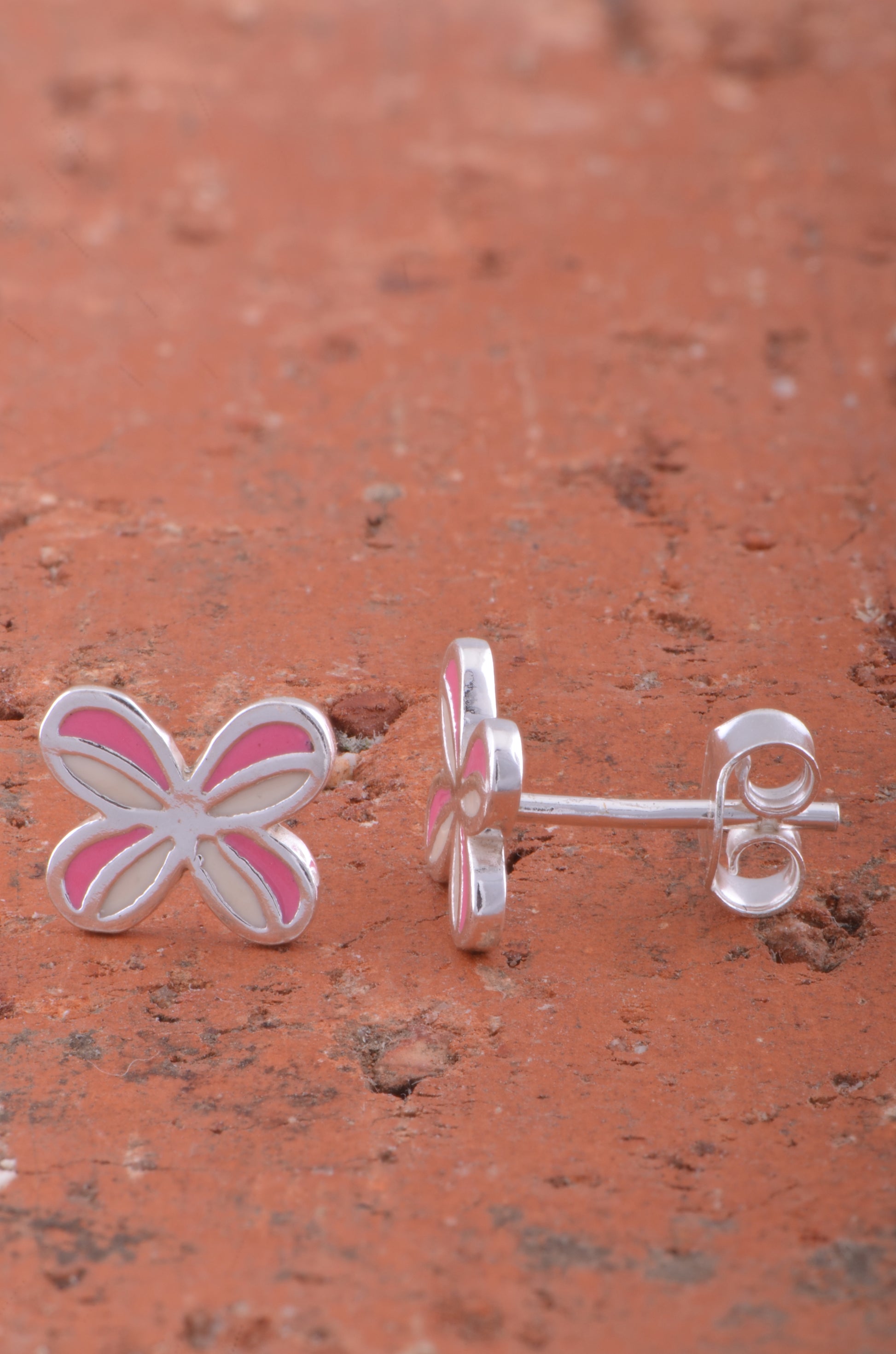 Sterling Silver Girls Dainty Pink Butterfly Stud Earrings 8mm