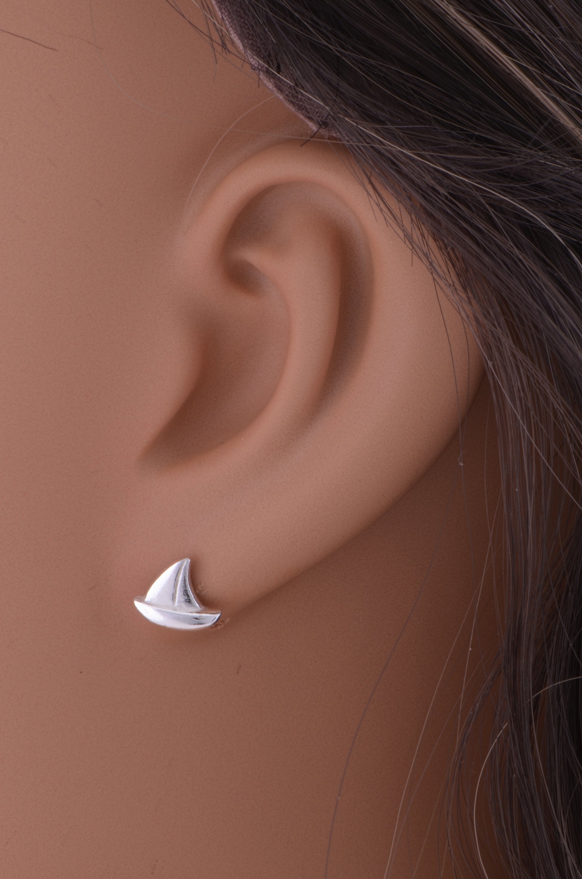 Sterling Silver Ladies Dainty Sailboat Nautical Stud Earrings