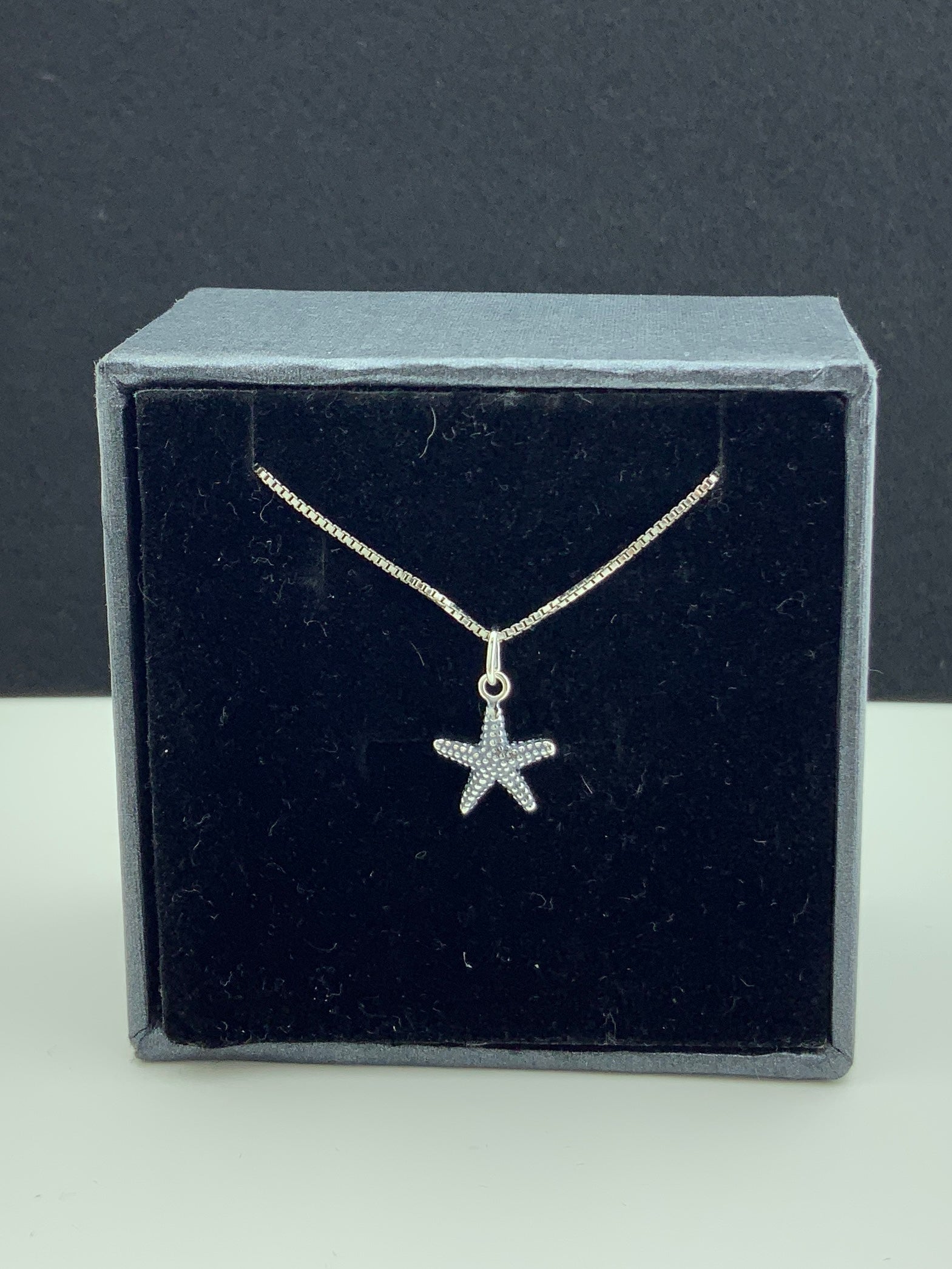 The necklace comes with a sterling silver 18-inch box chain, offering a sleek and refined look. The durable sterling silver ensures a lasting shine and timeless appeal. Each Sterling Silver Women's Dainty Nautical Starfish Charm Necklace comes beautifully packaged in a black gift box, making it an ideal present for birthdays, anniversaries, holidays, or any special event.