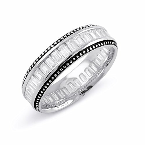 Sterling Silver Thing Baguette Cut Cz Eternity Ring