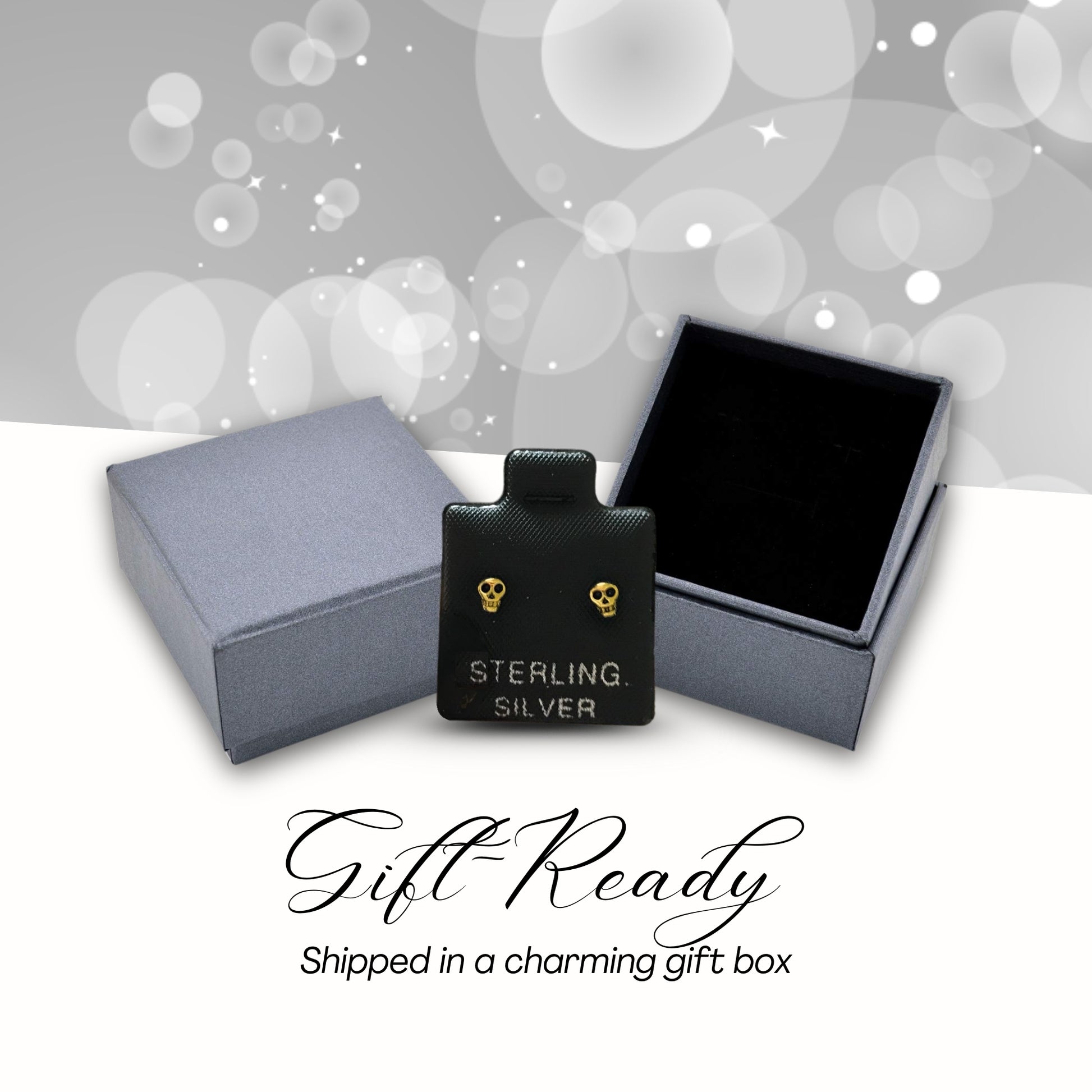 These earrings are tarnish resistant and nickel free with hypoallergenic features. All SilverCloseOut Jewelry is genuine Sterling Silver and stamped with 925. Yellow Gold Tone Silver Tiny Skull Stud Earrings - 4mm make a Great Gift for all Occasions; Mothers Day, Valentine's day, Birthday Gift- for Friend, sister, mother, wife, girlfriend, or grandmother. All Yellow Gold Tone Silver Tiny Skull Stud Earrings - 4mm are shipped in a small Gift Box and come with a 60-day Return policy.